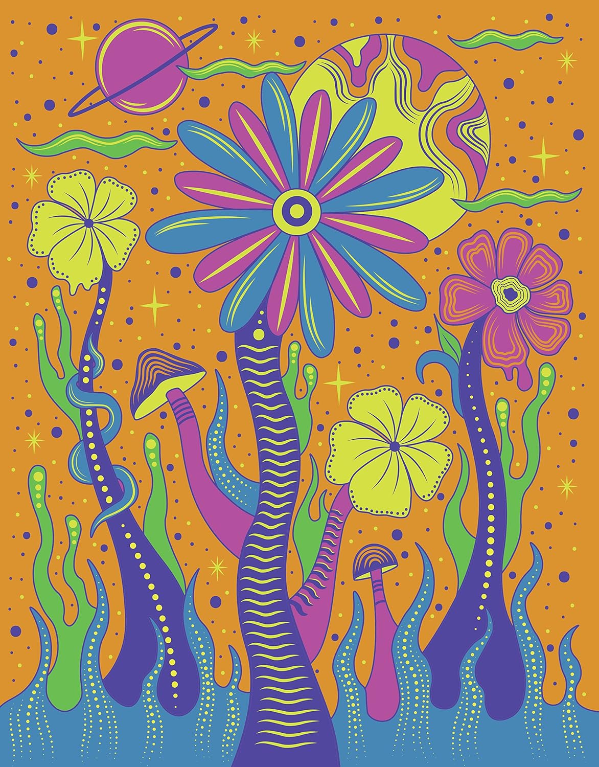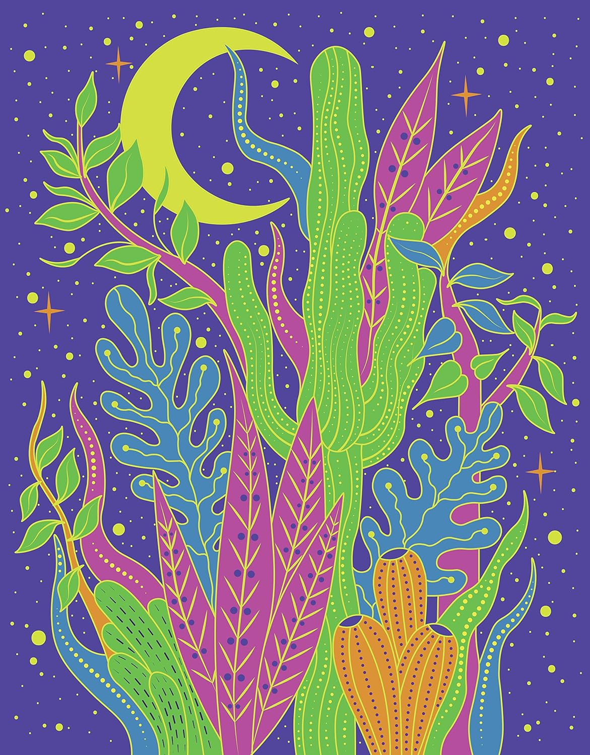 Surround yourself with the positive vibes of the natural world with 14 large-scale psychedelic black-light posters! Weird & Wonderful Nature is filled with mind-bending illustrative posters that give your space that groovy vibe. With colorful and eclectic art throughout, these easy-to-remove posters bring a fun energy to any room. Complete with flowers and trees, birds and other creatures, and beautiful landscapes and scenes, decorate your space with groovy art that taps into the deep spirituality of Mother Nature. Features: Each of the 14 posters is 11" × 14" in size The posters are glued in for easy and safe individual removal All posters are printed on high-quality, durable cardstock Printed entirely with fluorescent inks, these posters have the ability to glow under black light, making the art viewable all day and night Perfect for any space, creating an intense and happy focal point for your walls Transport your home into a world of tranquil nature with the black-light posters of Weird & Wonderful Nature, and the rest of this groovy poster book series.