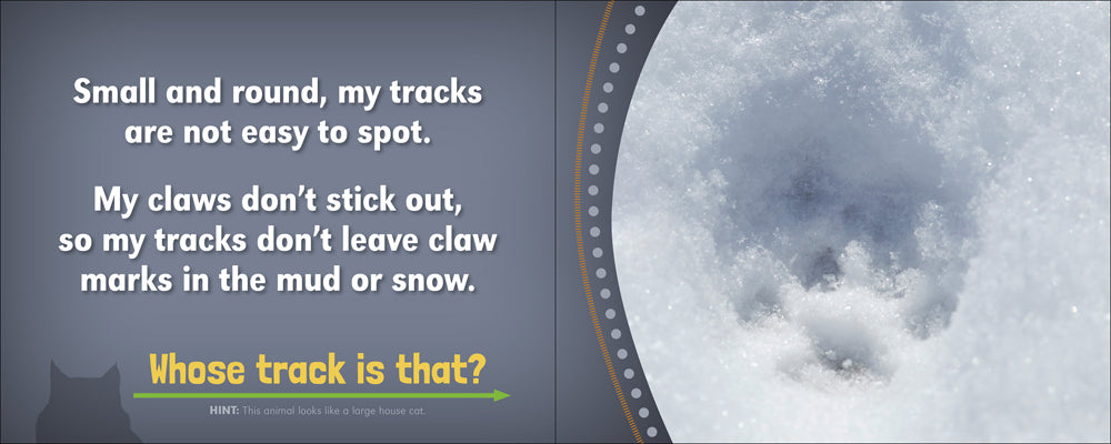 Spotting animals in the wild is tricky, but they leave plenty of clues behind, especially tracks. Examine the evidence. Study the animal tracks. See if you can guess “Whose track is that?” Then turn the page to discover the answer! This interactive and entertaining picture book features the full-color photography of Stan Tekiela, a professional naturalist and award-winning author. With every reading, children get more familiar with a variety of North American critters. They might soon start seeing animal tracks on every outing!