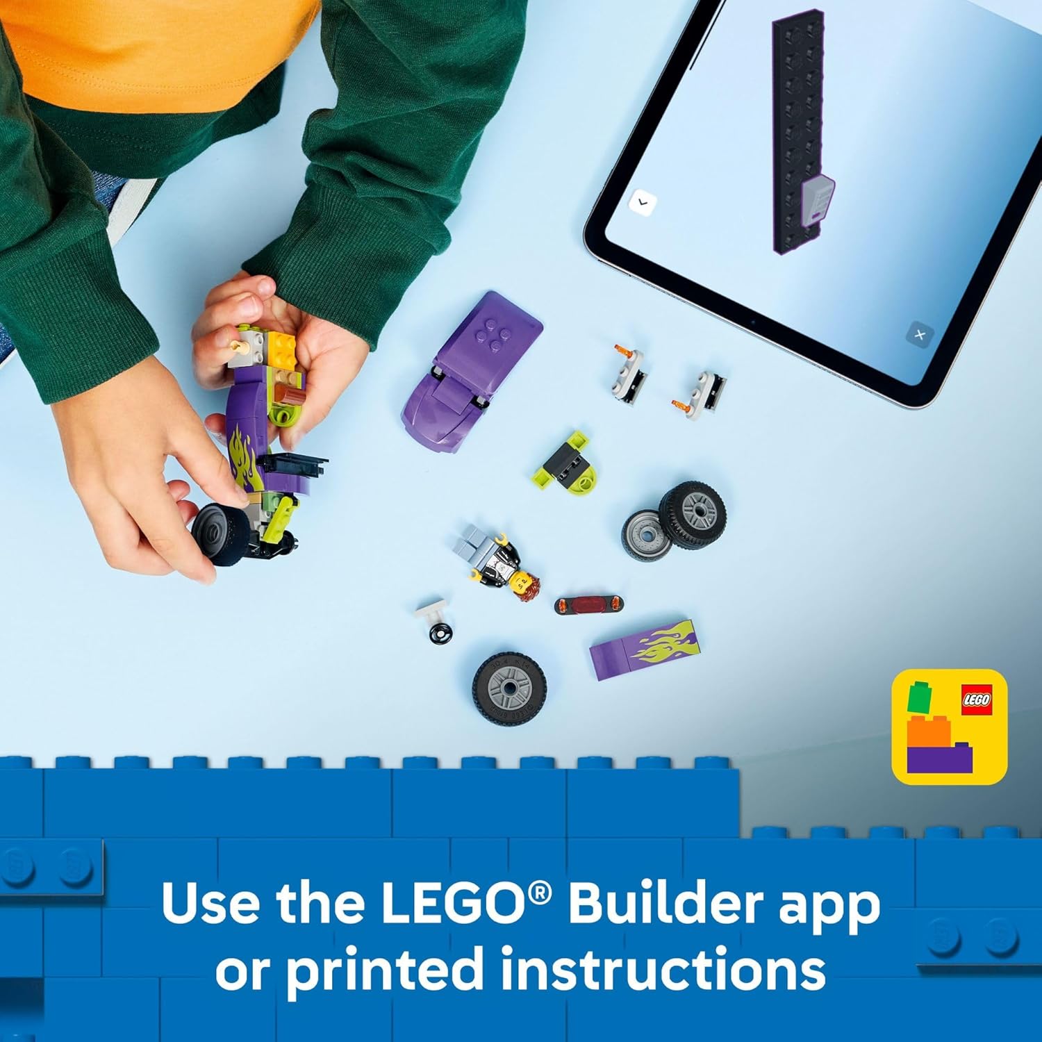 Young race car lovers can buckle up for high-speed drag racing action with the LEGO City Hot Rod (60485) building toy for kids ages 5 years old and up. This compact playset packs big thrills with detailed racing features including oversized rear tires, a driver cockpit with a lift-up roof, and a cool purple color scheme with neon green flames. Kids can place the driver minifigure in the car's cockpit and speed off on high-octane racing adventures. This toy car for kids can be combined with other sets in the LEGO City range (each sold separately) for more exciting race action. Makes a great birthday gift or anytime treat for boys and girls who love classic toy cars, building and imaginative storytelling. For more fun, parents can help kids access intuitive building instructions and 3D building tools in the LEGO Builder app. Contains 81 pieces.