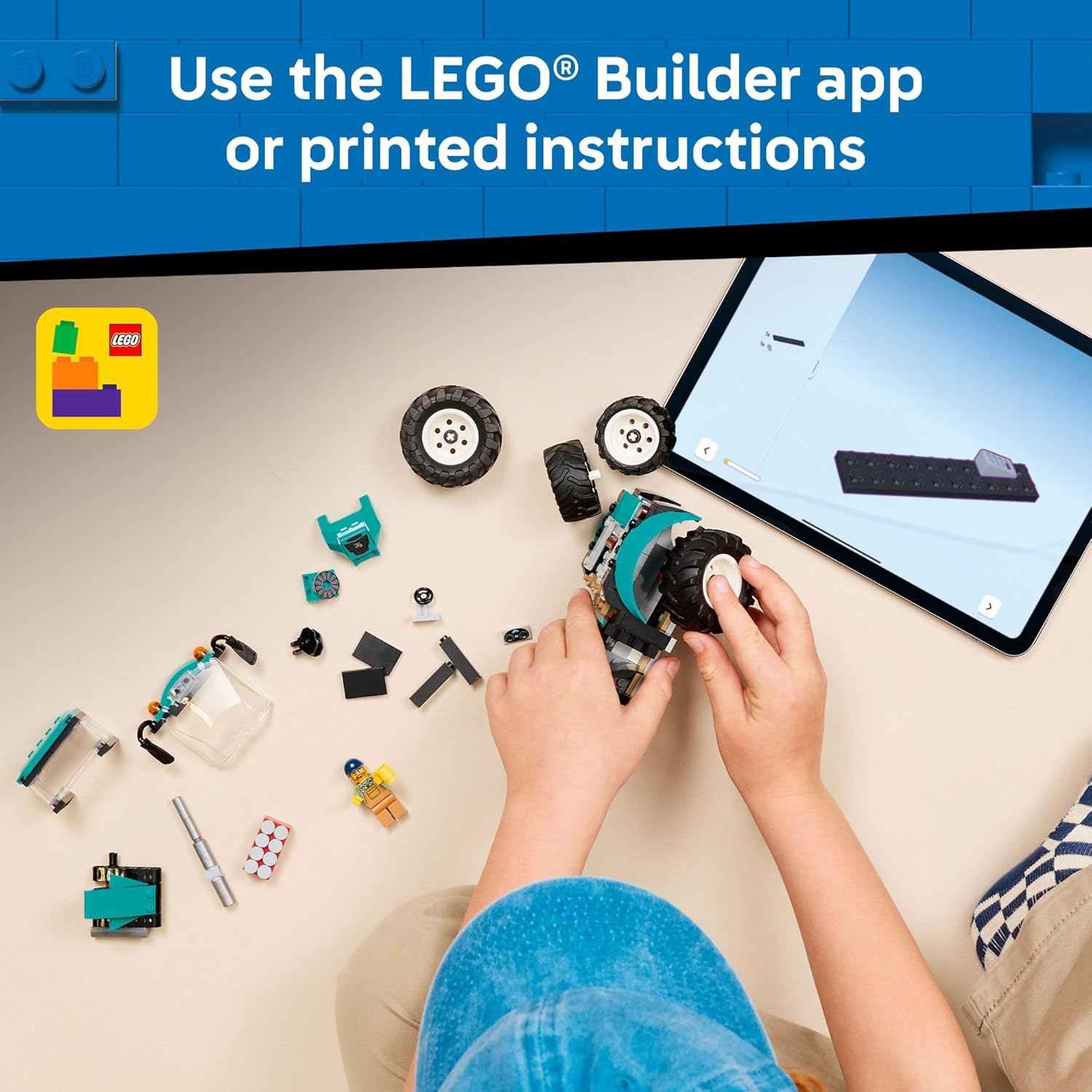 Power up kids' imaginations with the LEGO City Farm Tractor (60498) building toy for kids ages 6 years old and up. This detailed tractor toy comes with a fresh teal color scheme and 4 large rubber tractor tires. Young builders can remove the cab roof to pop in the farmer minifigure and open the hood to inspect the engine before heading out on exciting countryside adventures. This pretend play toy for kids can be combined with other sets in the LEGO City range (each sold separately) for imaginative adventures across their farm, towns, and more. Makes a great birthday gift or anytime treat for boys and girls who love toy tractors, building challenges and creative storytelling. For more fun, parents can help kids access intuitive building instructions and 3D building tools in the LEGO Builder app. Contains 204 pieces.