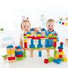 Hape classic 100 pieces wooden blocks set that is loaded with multiple shape blocks and 4 different colors, which not only inspire hours of play and also enhance children's creativity and cognitive skills. Watch them explore how different shapes can make towers higher or wider. The set also includes a container for easy storage of the block set so no need to worry about losing any pieces.
