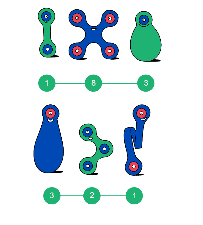 With 18 pieces in 6 unique shapes and a quick start guide, this mini pack is the perfect size to stack and pack for independent play or for building (or wearing) on the go! Made for kids and kids at heart age 4+.
