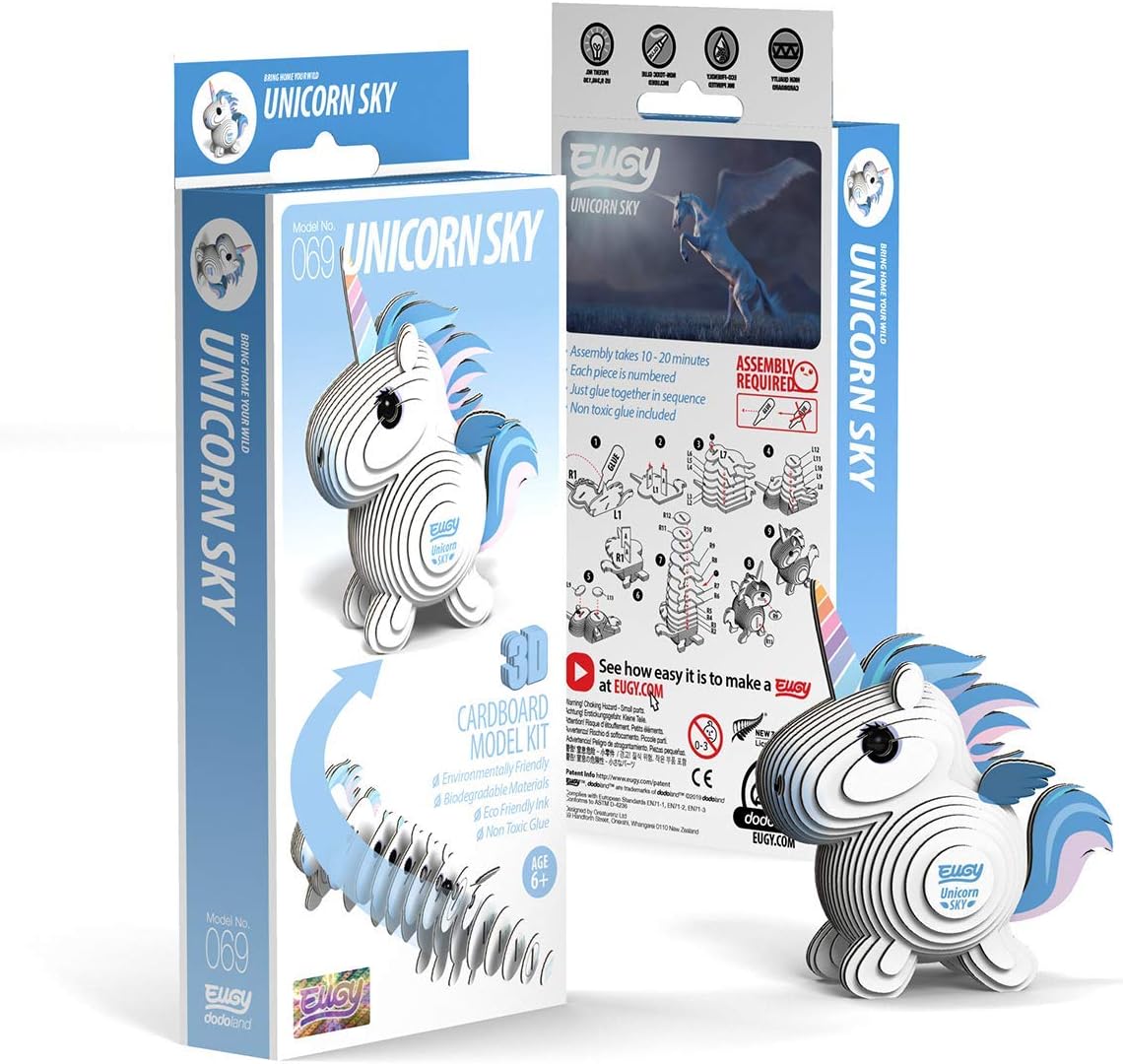 Eugy miniatures are cute cardboard creatures beloved by children and parents alike! Designed in New Zealand and made from eco-friendly recycled cardboard and rice-based inks, Eugys are easy to assemble and fun to build. Put them together using the included instructions and non-toxic glue, and collect the whole series of dinosaurs and animals (real and imaginary). 3D Puzzles provide a new and exciting experience of assembling for children. Develop cognitive, spatial and motor skills, all at the same time.