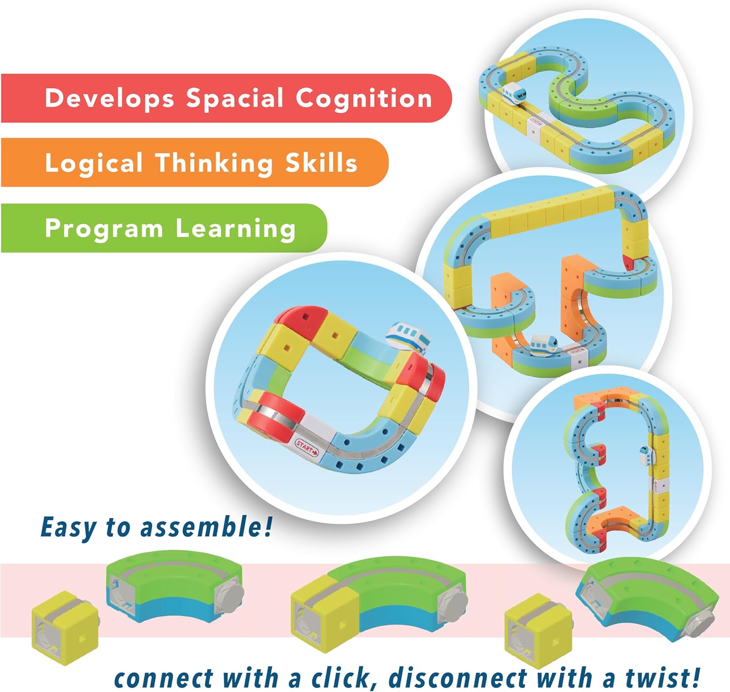Rail Cube is an interactive STEAM toy that sparks creativity, engineering, and problem-solving. With five interchangeable, color-coded blocks, kids design and build dynamic 3D magnetic monorail tracks. The train stays on track using magnets, gliding smoothly along custom courses. By mixing and matching block shapes, children explore physics, spatial reasoning, and sequencing. Plus, they can record and follow color patterns, introducing early programming concepts in a fun, hands-on way!