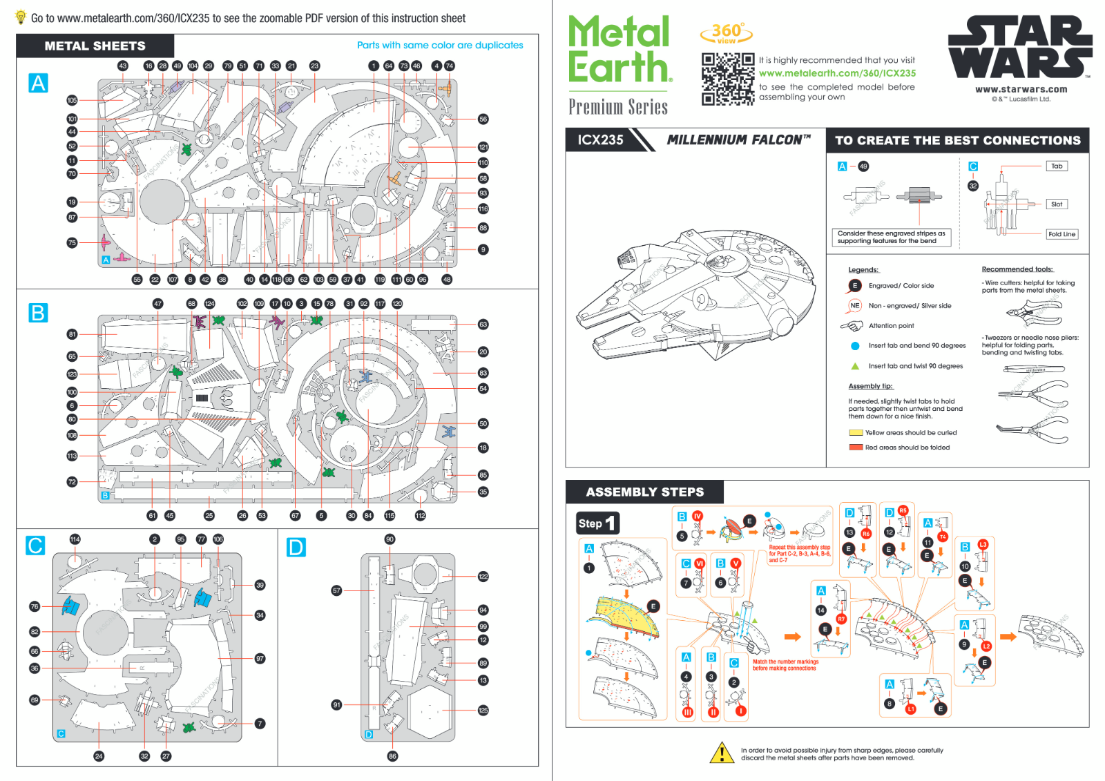 The Metal Earth models are amazingly detailed etched models that are fun and satisfying to assemble. Each model starts out as 4 inch square metal sheets and you simply pop out the pieces and follow the included directions to assemble your model. No solder or glue needed.