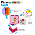 Dream Big & Build Big! Description: This PicassoTiles magnet tile toy set comprises of 121 pieces that will add dynamics to our structured creations. Personalize the magnetic building block tiles with graphical inserts, bringing creativity, learning, and imagination together in one captivating experience. Features: Versatile Compatibility: Seamlessly integrate PicassoTiles magnet tile building block toys with other PicassoTiles toy sets, providing a platform for unlimited creativity and the opportunity to amplify pretend play with complementary sets. In The Box: 2 Action Figure Characters 1 Car truck 2 Windmills 5 Straight triangle to build rocket 28 Square window click-ins Educational graphic insert piece with alphabet animals, numbers and natural objects STEM Learning: Immersive STEM Learning Experience: PicassoTiles magnetic tile toys engage young minds with hands-on exploration and interactive lessons in Science, Technology, Engineering, and Mathematics (STEM). By promoting crucial skills like hand-eye coordination, problem-solving, and spatial awareness, learning becomes both enjoyable and beneficial. Learn and Play: PicassoTiles magnet tile building block toys turn learning into an adventure, inspiring imaginative pretend play, problem-solving, and non-stop fun as kids explore the wonders of early educational STEM learning. BPA Free & Non-Toxic: Our magnet tile building toy sets are BPA-free and non-toxic, creating a safe environment for your child's playtime. Every compact tile is thoughtfully shaped with smooth edges, enhancing the protective shield against any accidental cuts or bumps. With us, you're not only guaranteeing enjoyable amusement, but also embracing the peace of mind that comes from knowing your little one’s exploration is shielded from harmful elements.