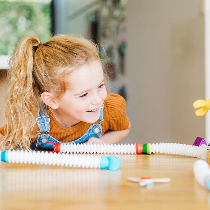 Beep. Boop. Who said robots aren’t flexible? Get creative and make your own colourful, crazy robots. The new, flexible, extendable magnetic bars add an extra dimension to the SmartMax playset. Choose your parts, bend, extend, assemble, and play! Will your robot fly, jump, grab, wobble, or drive? The twelve-piece set including inspirational poster helps develop fine motor skills and stimulates fantasy. Roboflex works and can be combined with all other SmartMax sets. Are you ready to meet these flexible friends?