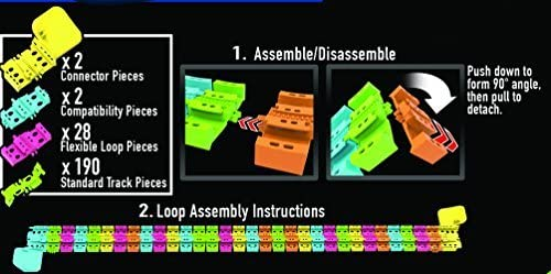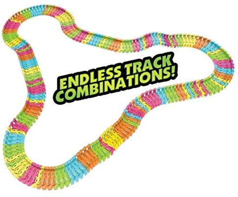 Includes 9.5 Feet of Standard Flexible Track and 3.5 Feet of Loop Track for a total of 13 feet of Neon Glow Track and One Light-Up Race Series Car