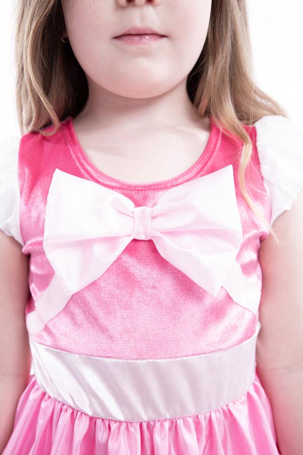 Get your little one ready to dance the night away in this beautiful Cinderella Ball Gown dress. They’ll love the vibrant color and the soft pink bows that adorn the skirt and the center piece of the stretch velvet bodice. China silk sleeves and perfect princess ruffles on the skirt will help your princess feel elegant and ready for the ball!