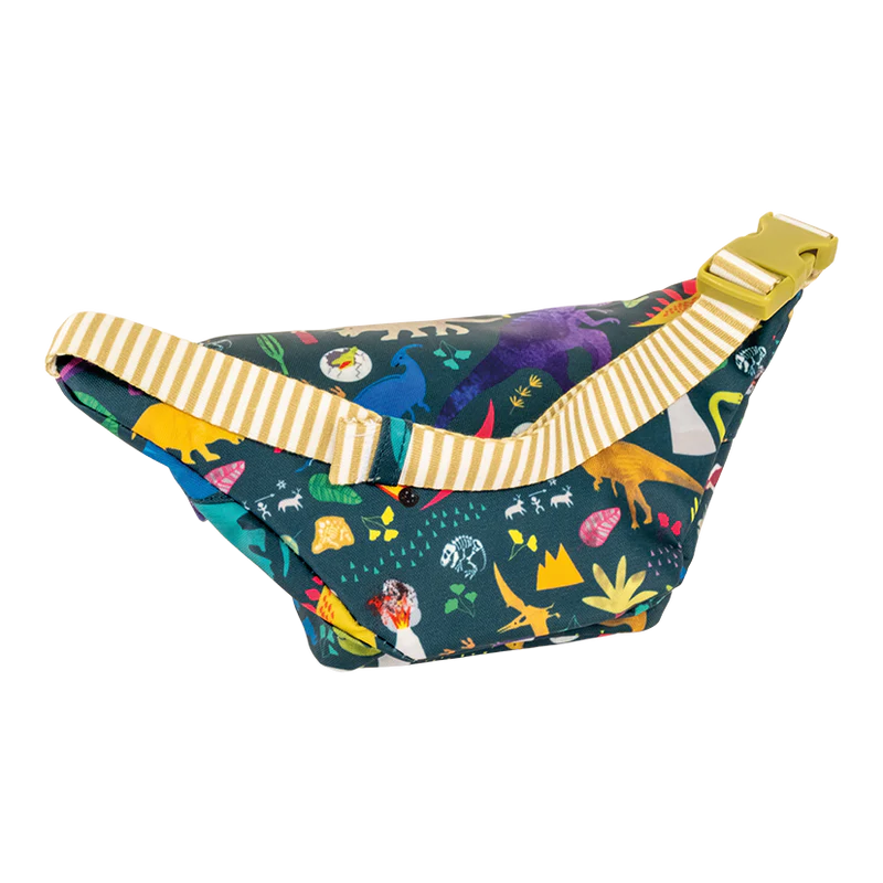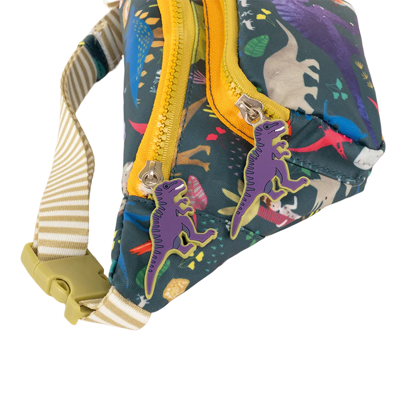 Our Dinosaur design has two chunky, dinosaur shaped zip pulls, two handy compartments and an adjustable strap in a gorgeous striped material. Inside the bag is a lovely dinosaur print and an ‘I belong to…’ label for personalisation.