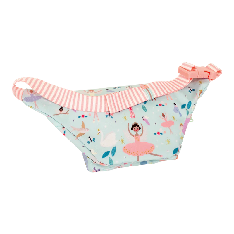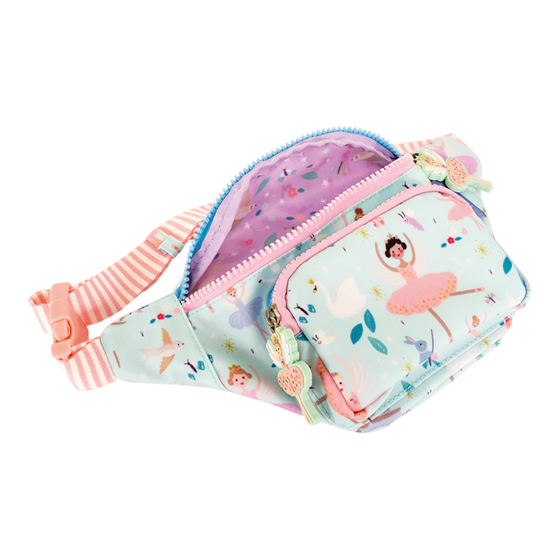 Our Enchanted design has two chunky, ballerina shaped zip pulls, two handy compartments and an adjustable strap in a gorgeous striped material. Inside the bag is a lovely Enchanted print and an ‘I belong to…’ label for personalization.