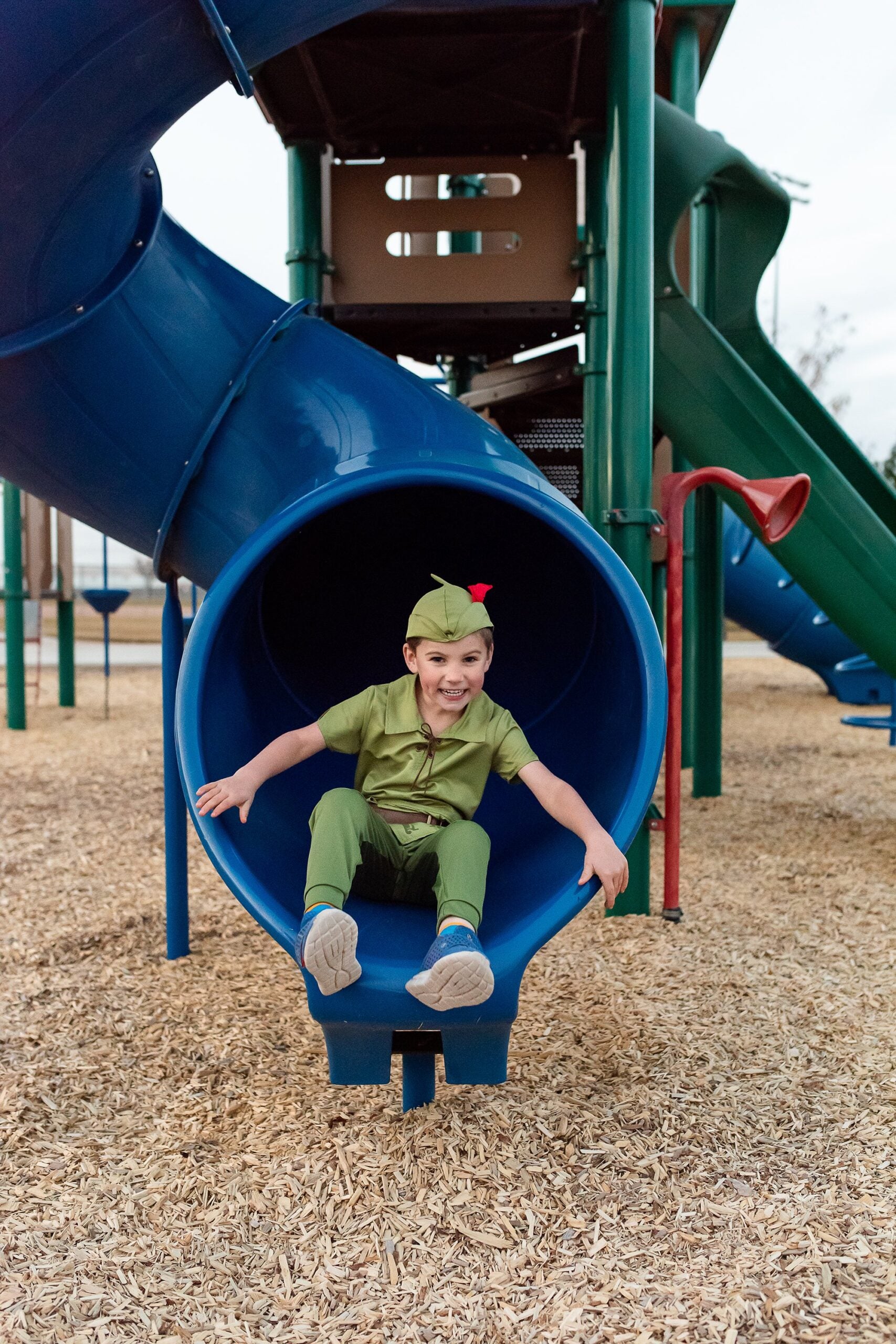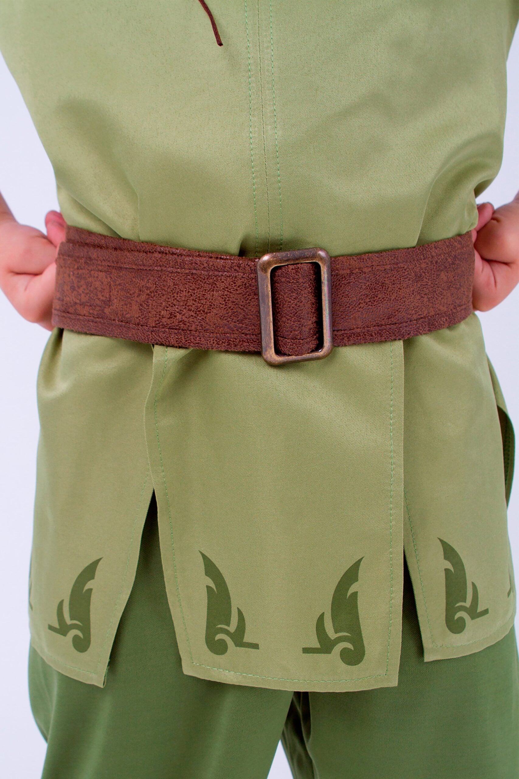 Your child will enjoy hours of imaginative play as they transport themselves to the magical world of Neverland in their new Peter Pan costume! This adventurous four piece set comes with a top, pants, adjustable Velcro belt, and classic Peter Pan hat with a red fabric feather. There are no itchy fabrics, and it comes with completely finished seams and hems. There are no buttons or zippers to frustrate little fingers.