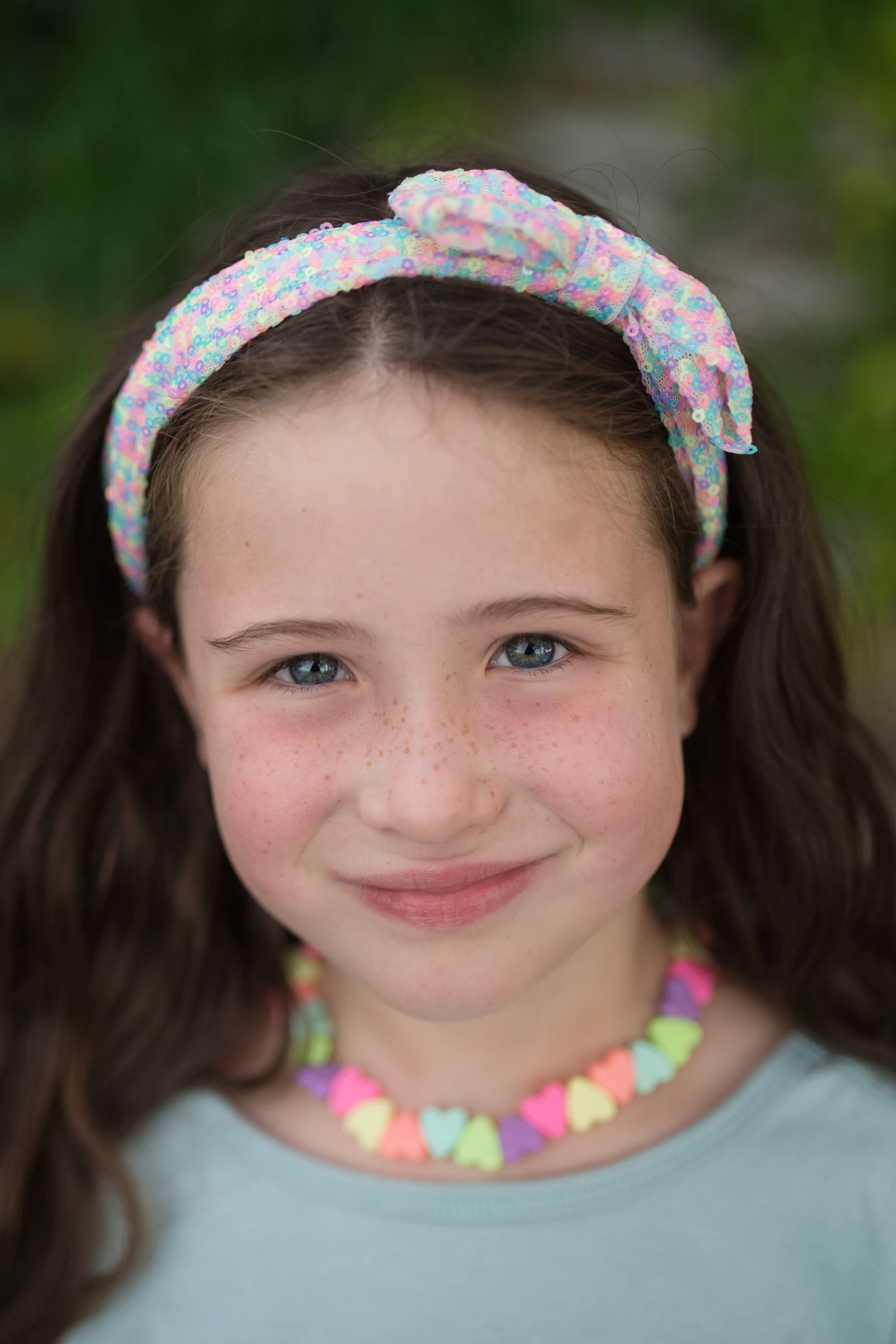 Sweet Tart Heart Necklace and Bracelet set is made with matte neon hearts designed to resemble the classic candy hearts. Perfect for your little valentine! Our children's jewelry is strung with double the elastic to add extra durability.