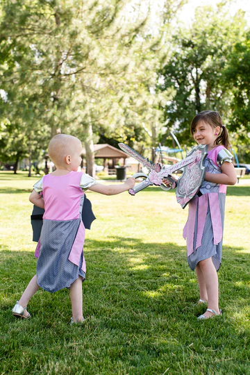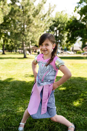 Defend your kingdom from invading forces, fight a dragon, and save the castle! This warrior princess dress is the perfect addition to your little princess's magical costume wardrobe.