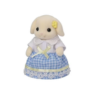 *The Flora Rabbit family members are wearing matching checkered outfits in a cool blue colour.