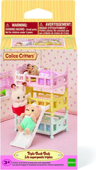 Calico babies love their cozy beds! Beds can be positioned in 3 fun ways. Stack them like bunk beds, arrange them like a pyramid, or simply use them as 3 separate beds. Complete with mattresses/pillows, blankets & 2 climbing ladders.
