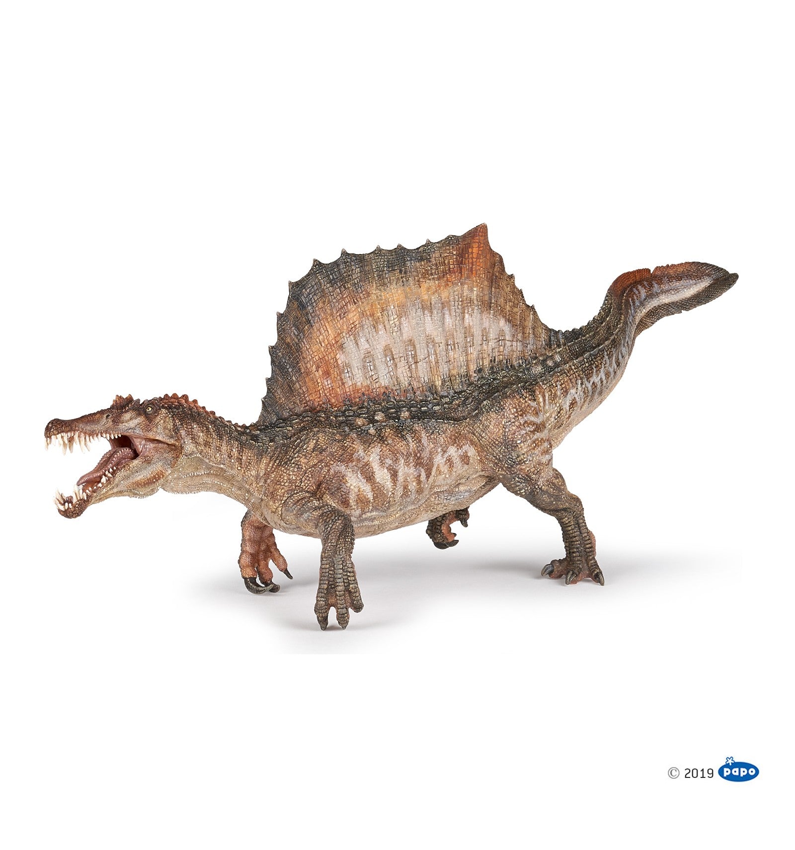With new fossil evidence we now see an aquatic quadrupedal dinosaur nearly 3 meters longer than the T-Rex! Papo's Limited Edition Spinosaurus is a highly detailed vision of what this massive predator could have looked like. With an eel-like tail and jaw. The Spinosaurus stands in a swimming-pose, with back feet pushing and front claws paddling at the water. Short hind legs, wide and flat feet and a long slender snout. Giftable Collector’s Box highlights the premium value of this limited edition item and provides good protection for storing. Add it to your collection today!