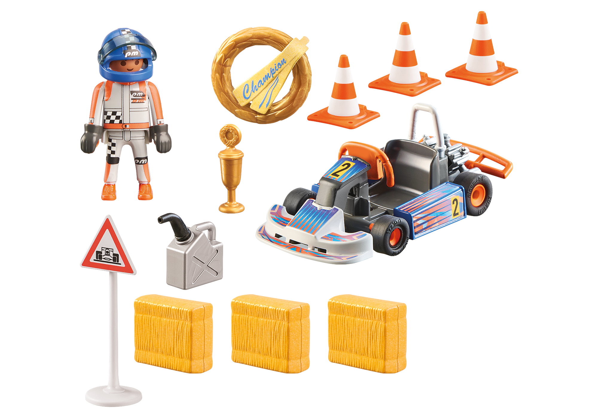 Looking for a great gift for little motorsport fans? Then the PLAYMOBIL Go-Kart Racer gift set is just the thing. The lovingly designed toy set takes racing enthusiastic children into the exciting racing life. The driver puts on his helmet, takes a seat in the sleek go-kart and off he goes onto the race track. Will he cross the finish line first? The PLAYMOBIL gift set consists of a PLAYMOBIL racing driver, a go-kart, three pylons, trophy, winner's wreath and other great racing accessories. The go-kart can be refueled with the canister. Thanks to decorative box and name plate for labeling, PLAYMOBIL gift sets save wrapping paper and thus protect the environment. A great toy set to bring home and give away.