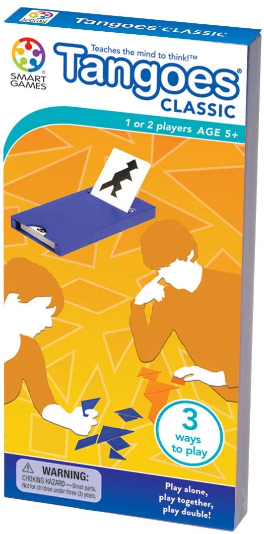Based on the ancient Chinese Tangram puzzle, Tangoes products are a learning tool that combines artistic and mathematical elements to enhance visual perception ability, develop problem solving skills, creative thinking capacity and teamwork. The classic tangram forms a square. These 7 pieces can also form an infinite number of abstract designs, human figures, animals and everyday objects. The object of Tangoes products is to form the image on the card using all seven puzzle pieces. From ages 5 to 105, all ages are delighted by the challenge of forming the puzzle presented with seven dynamic pieces. Packed in our signature, slim plastic case, this challenging game includes two sets of our classic game of Tangoes. This traditional tangram game has 2 sets of seven playing pieces each in blue and red. Also included in the set is card set 1 containing 27 cards with 54 puzzles and solutions. Hours of mind-bending play for one or two people. Each person can play independently or challenge each other to a race to solve the puzzle.