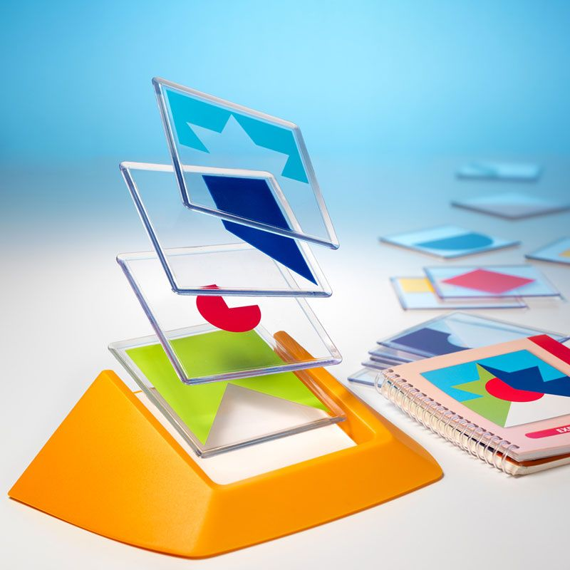 Stack it up, one tile at a time! Color Code is a unique game where players layer see-through tiles to re-create different multi-colored shapes shown in the included challenge booklet. Great for everybody, from kids to professional graphic designers! Includes 100 challenges for endless, brain-building fun.