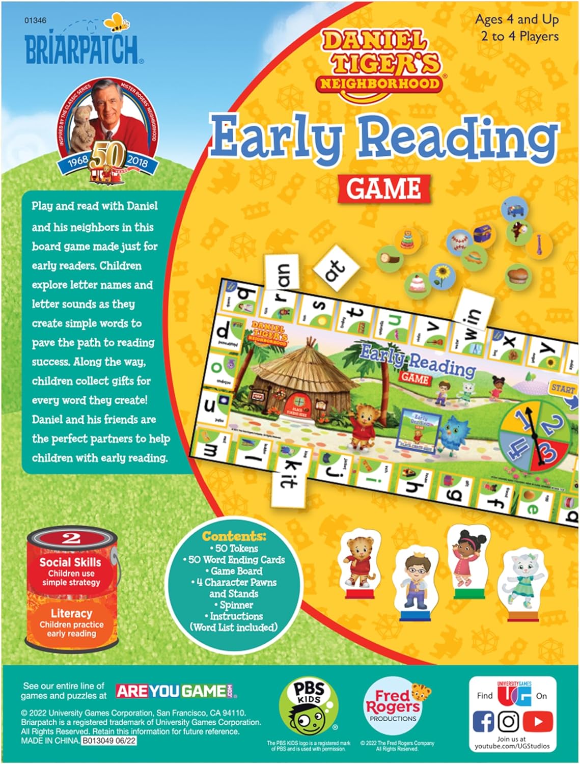 Play and read with Daniel and his neighbors in this board game made just for early readers. Children explore letter names and letter sounds as they create simple words to pave the path to reading success. Along the way, children collect gifts for every word they create! Daniel and his friends are the perfect partners to help children with early reading.