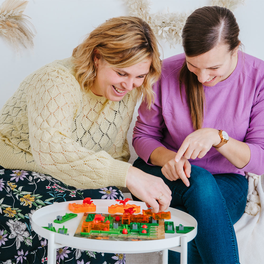 Dragon Inferno challenges players to strategically build the biggest kingdom in the Dragon valley. Watch out! Fire-breathing dragons can turn kingdoms into ashes… but if you’re smart, you can use the dragon’s inferno against your opponent. The player with the biggest kingdom at the end of the game is the winner.