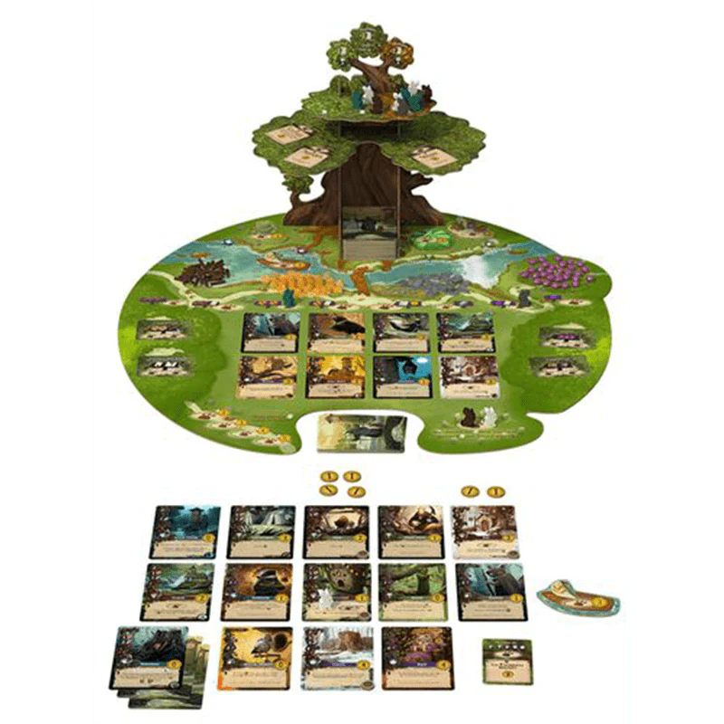 Simple to learn gameplay with satisfying depth Dynamic tableau building and worker placement Eye-catching table presence: round board and three-dimensional tree The time has come for new territories to be settled and new cities to be established. Description From Everfrost to Bellsong, many a peaceful year have passed in Everdell — but the time has come for new territories to be settled and new cities to be established. You will be the head of a group of critters intent on just such a task. There are buildings to construct, lively characters to meet, events to host— you will have a busy year ahead of you! Will the sun shine brightest on your city before the winter moon rises?