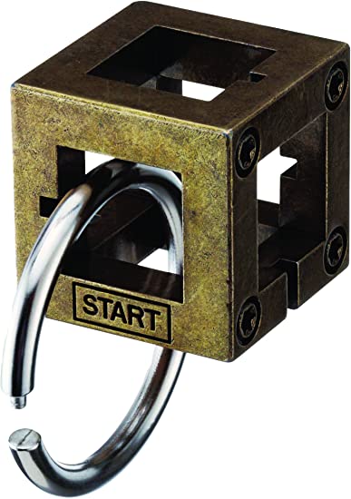 Hanayama puzzles are amazingly crafted metal brainteasers with the goal of taking them apart and putting them back together again. A ring is tangled on a cubic frame. The ring moves freely within the cubic space and makes you feel that time is infinite. Begin with the ring tangled around START and try to successfully remove the ring.