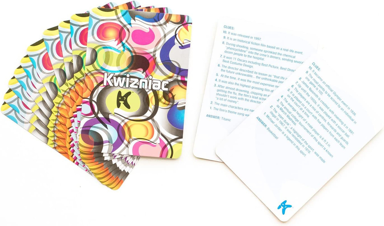 Kwizniac, The Trivia Countdown Game, is a take-anywhere, twist on trivia games designed to test your knowledge. The object of Kwizniac is to accumulate as many points as possible by correctly answering trivia questions with as few clues as possible. Unlike most trivia games that give you a single question about a subject, each Kwizniac clue card has a set of 10 clues in decreasing order of difficulty. The more clues it takes to answer the question, the less points you receive. Kwizniac offers a more enjoyable trivia experience where you’ll always get the answer eventually. It is great when traveling as it is mobile and easy to use. The set includes 2000 clues with 200 answers. It comes in two easy to carry card boxes for easy travel and organization. Imagine your family laughing, smiling, and having a good time quizzing each other on their trivia knowledge. See who gets the most points by answering the question correctly before having to get hints!