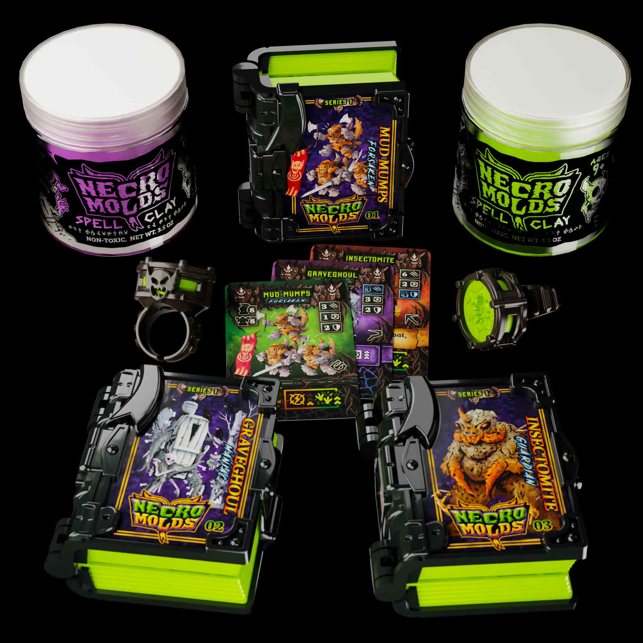 You dare wield the power of the Necromolds? Foolish mortal, this is no child's game—within your hands lies the forbidden art of summoning golem armies! Unleash the chaos of Necromolds®: Monster Battles—the best wargame for kids and adults who crave power! Mold your monstrous armies from spellbook toys and Spell Clay (compare to Play-Doh sets) and command them with your Caster Rings. The Battle Box is fast, fun, and includes everything two players require! Will your army rise victorious, or be smashed into oblivion? The battlefield awaits!