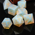 Consists of a D4, D6, D8, D10, D12, D%, D20 plus a leatherette dice case