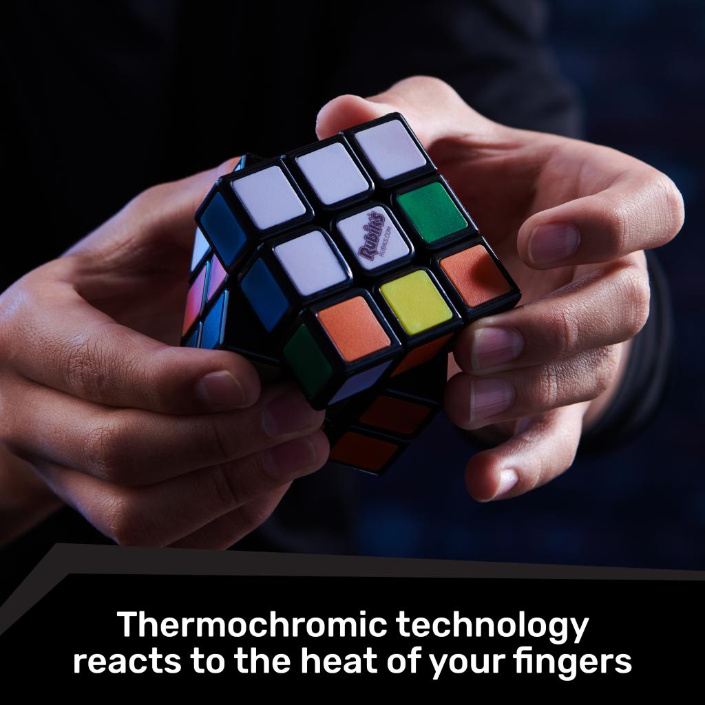Touch, reveal, and solve with the Rubik’s Phantom. Innovation adds a new layer of challenge to the original 3x3 Cube. Touch the Cube tiles to temporarily reveal color. Solve the latest Cube, the Rubik’s Phantom, as the colors fade. You will be amazed by the thermochromic technology of this Cube. Reveal the Phantom’s colors with the heat of your touch. Solve the cube before it fades back to black! This smart Cube is unlike any toy you have ever played with before. The Rubik’s Phantom is a difficult challenge level, meant for experienced Cubers. This brain teaser puzzle Cube is one of the most challenging to solve of the Rubik’s collection. Puzzle-loving adults and kids ages 8 and up will love this anxiety relief puzzle speed Cube. Invented in 1974 by Ernő Rubik, the original color-matching puzzle toy- the Rubik’s Cube- was created to help students understand three-dimensional problems. The prototype Magic Cube did things that the world had not seen before. It turned, it twisted and yet it did not break. Adding 54 colorful stickers to the six sides gave the puzzle its iconic look. Over 40 years of history has led the Rubik’s Cube to become one of the best-selling toys ever. With the new Rubik’s Phantom- you can become the puzzle Cube master of your house with thermochromic technology. Show your peers that you can accomplish something new with this toy! This smart speed Cube 3x3 makes the perfect gift idea for people of all ages or a stocking stuffer for anyone who loves a challenge. Share your Rubik’s Phantom solving skills with us on our social channels using #RubiksCube