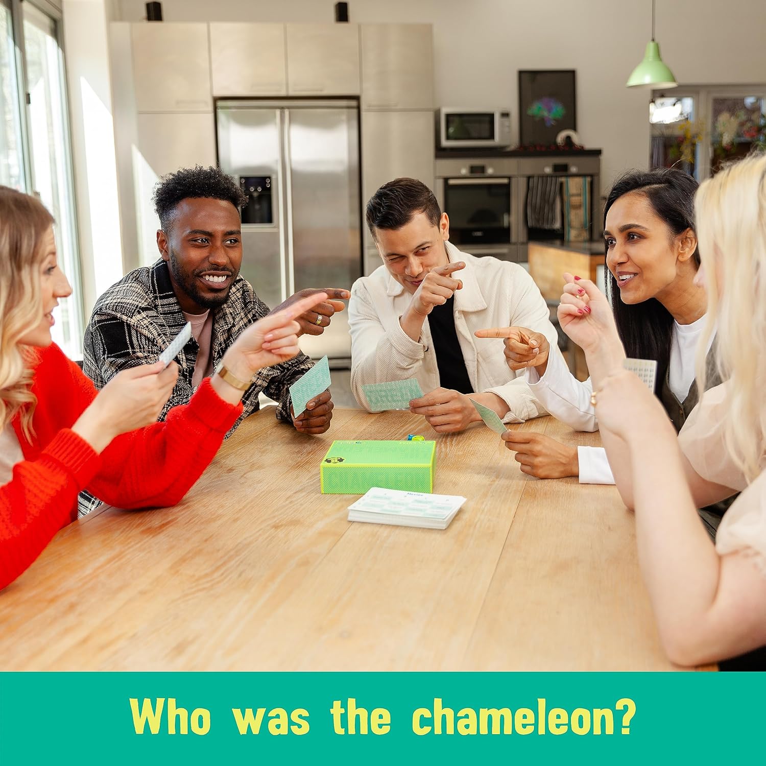 ONE OF YOU IS THE CHAMELEON In this board game, your job is to blend in and not get caught CATCH THAT CHAMELEON! Everyone is trying to work out who the Chameleon is. Everyone suspects everyone else at the beginning ONE WORD CAN GIVE YOU AWAY Using one carefully chosen word based on a secret topic, you each try to smoke out the Chameleon, who doesn’t know what the secret topic is
