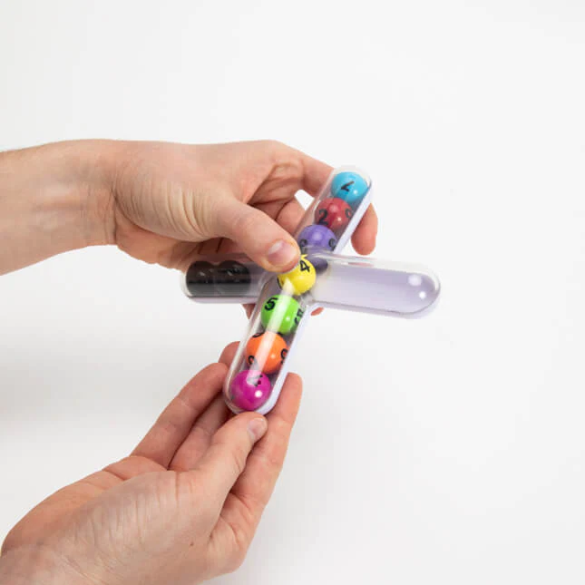 Easy to solve, impossible to put down! Tilt and roll to arrange the spheres into order, all while navigating around the two blockers. Line them up by number or roll them into a perfect rainbow. Then, use the hole in the middle to hold them in place and show off your win. The more you play, the easier it gets to solve, the more it becomes an enjoyable fidget experience for your hands AND your brain! Stay sharp on the go with Tiltago.