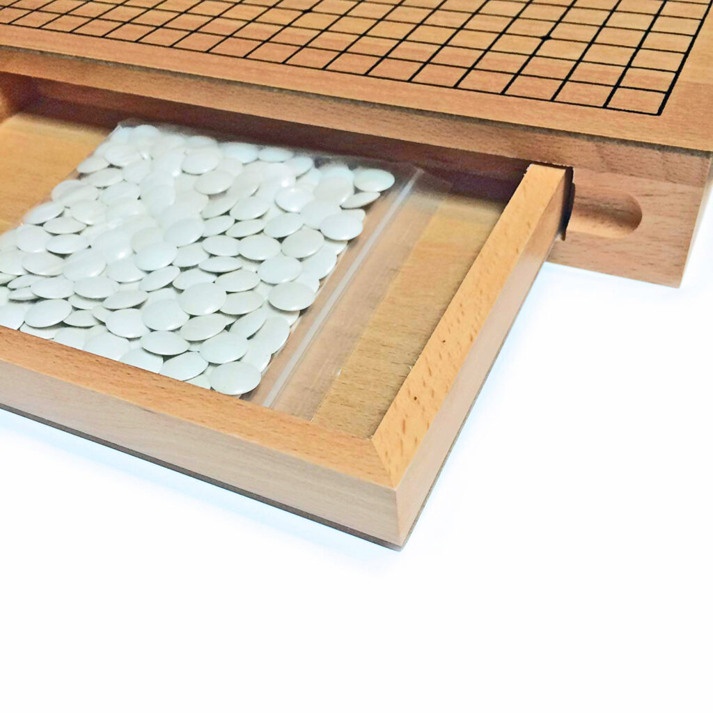 Our most popular Go set! This high-quality set includes a beautiful wood board with pull-out drawers for storing stones when not in use. Go is an ancient game of Chinese origin that rewards patience and concentration rather than greed and aggression. The shifting balance of territory and power can unnerve even the most disciplined and intellectual player. GOBAN: GO board is made of wood veneer to match golden-tinged Kaya tree INCLUDES: GO board measures 11.750 x 11.750 x 1.875 in., 361 pieces, instructions STORAGE: Board is equipped with convenient pull-out storage drawers for pieces GOOD FOR YOU: Teaches social, verbal, and cognitive skills, great for teachers WE GAMES: Making the world’s best traditional board games since 1977