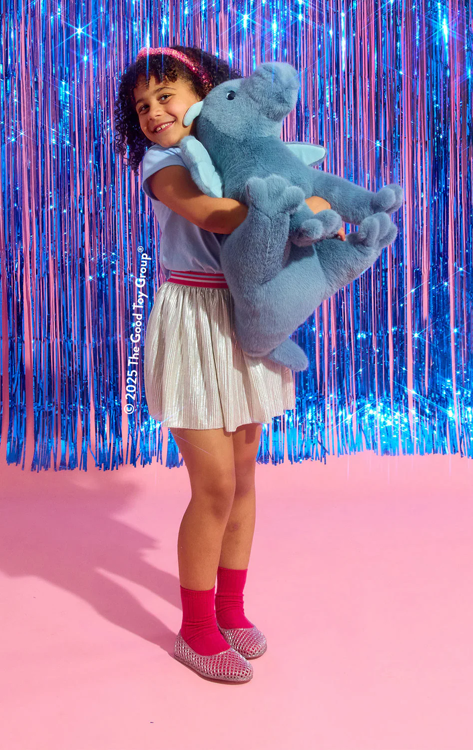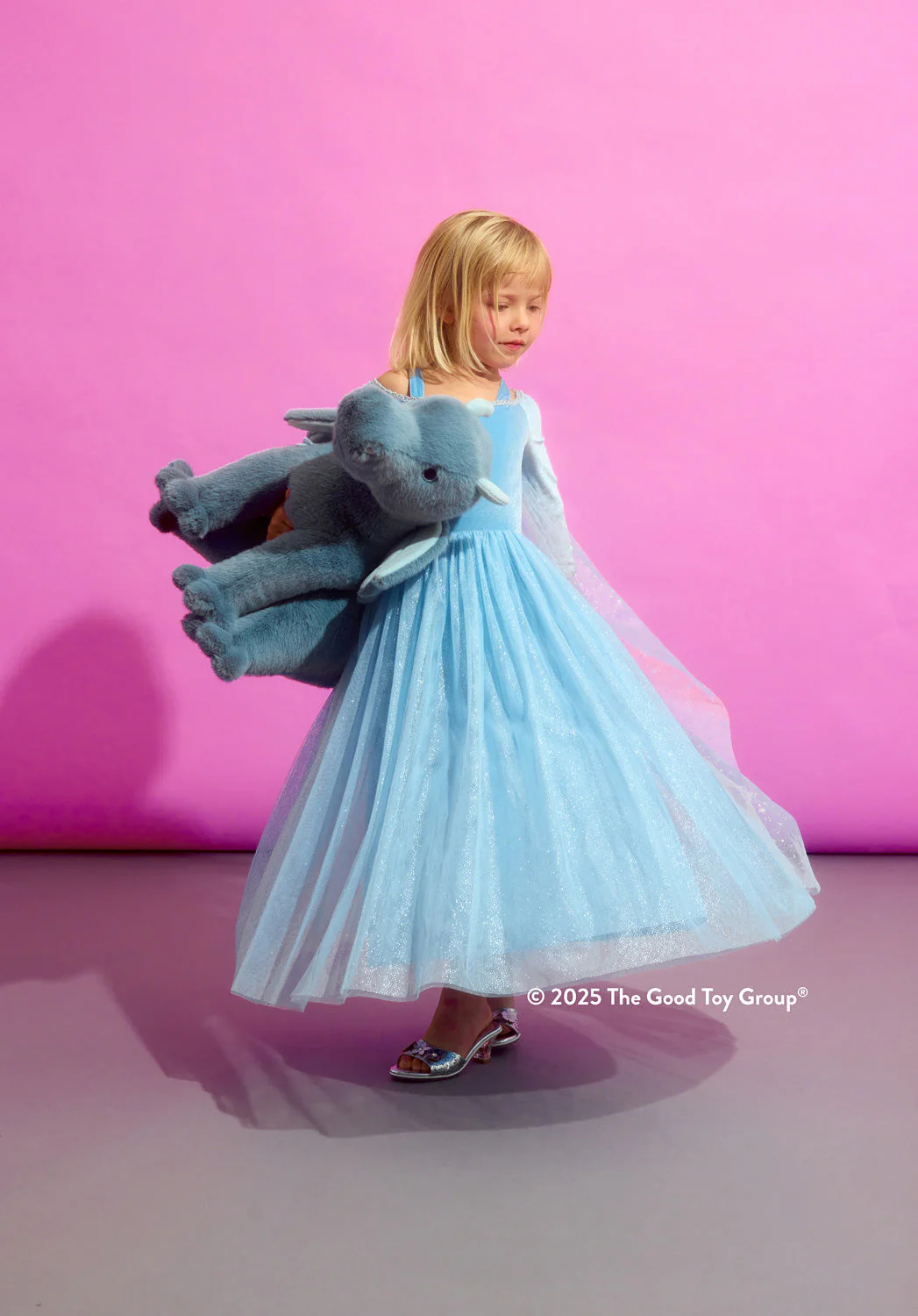 Meet Sukie, the biggest, cuddliest dragon in the kingdom! Standing an impressive 18" tall, Sukie is made from the softest dusty blue fur, with gentle blue eyes, big huggable wings, and a friendly face that’s impossible to resist. This oversized dragon is perfect for giant hugs, cozy story time snuggles, and soaring through castles in the clouds on endless imaginary adventures.