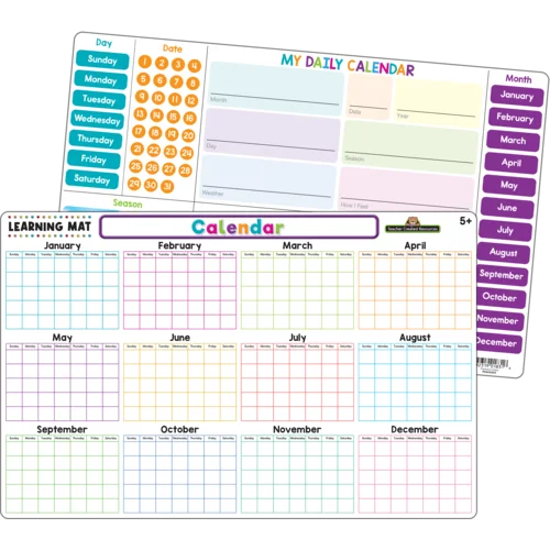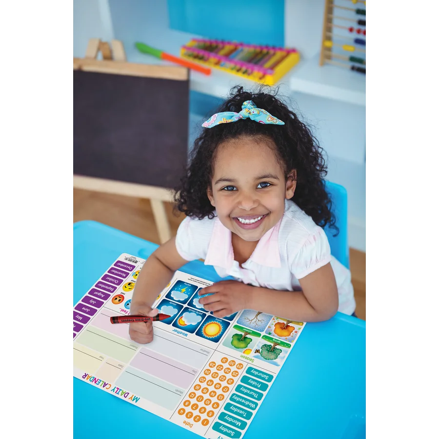 This mat will help students learn their months, days of the week, seasons, weather, and more! This durable write-on/wipe-off mat provides endless hours of learning and practicing essential skills. Great for at-home, for a fun meal-time activity, or take it on-the-go to use in the car or while eating out. Ages 5+.