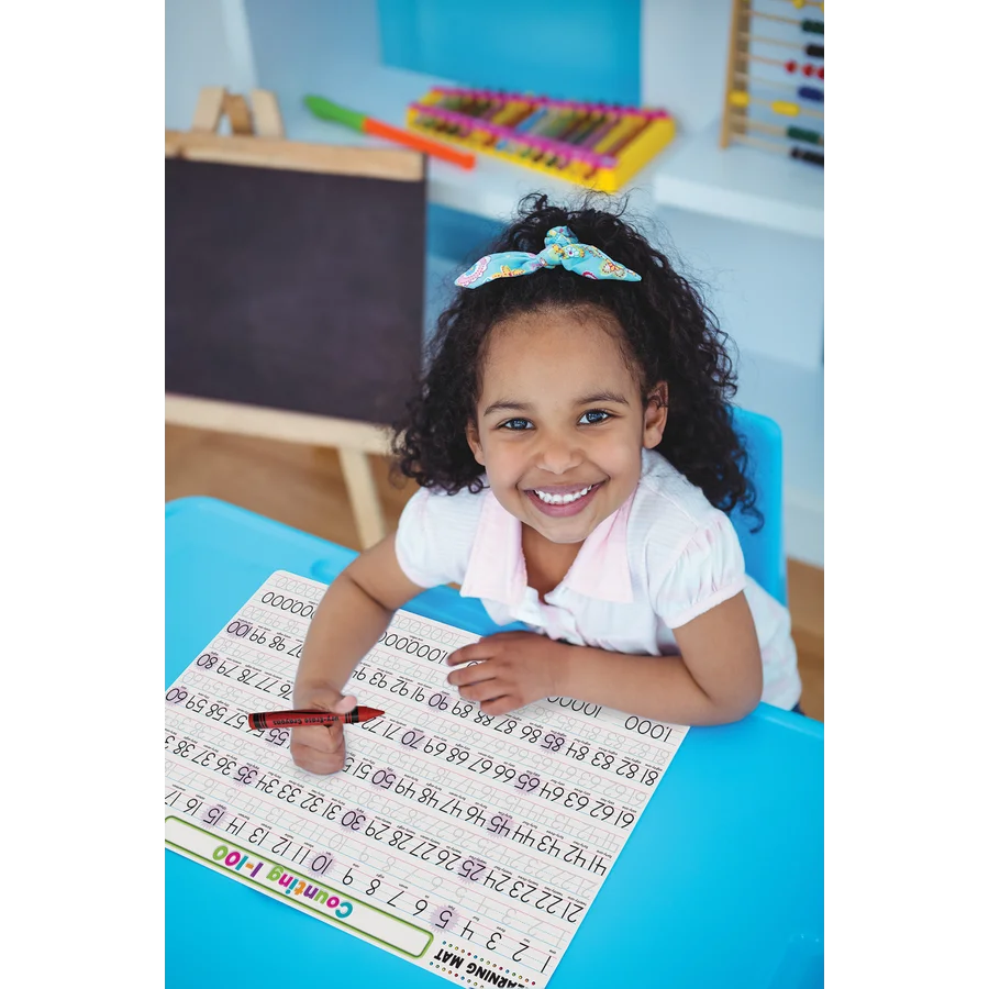 With this durable write-on/wipe-off learning mat, students can trace each number, and then practice writing them on their own! Great for at-home, for a fun meal-time activity, or take it on-the-go to use in the car or while eating out. Ages 5+.