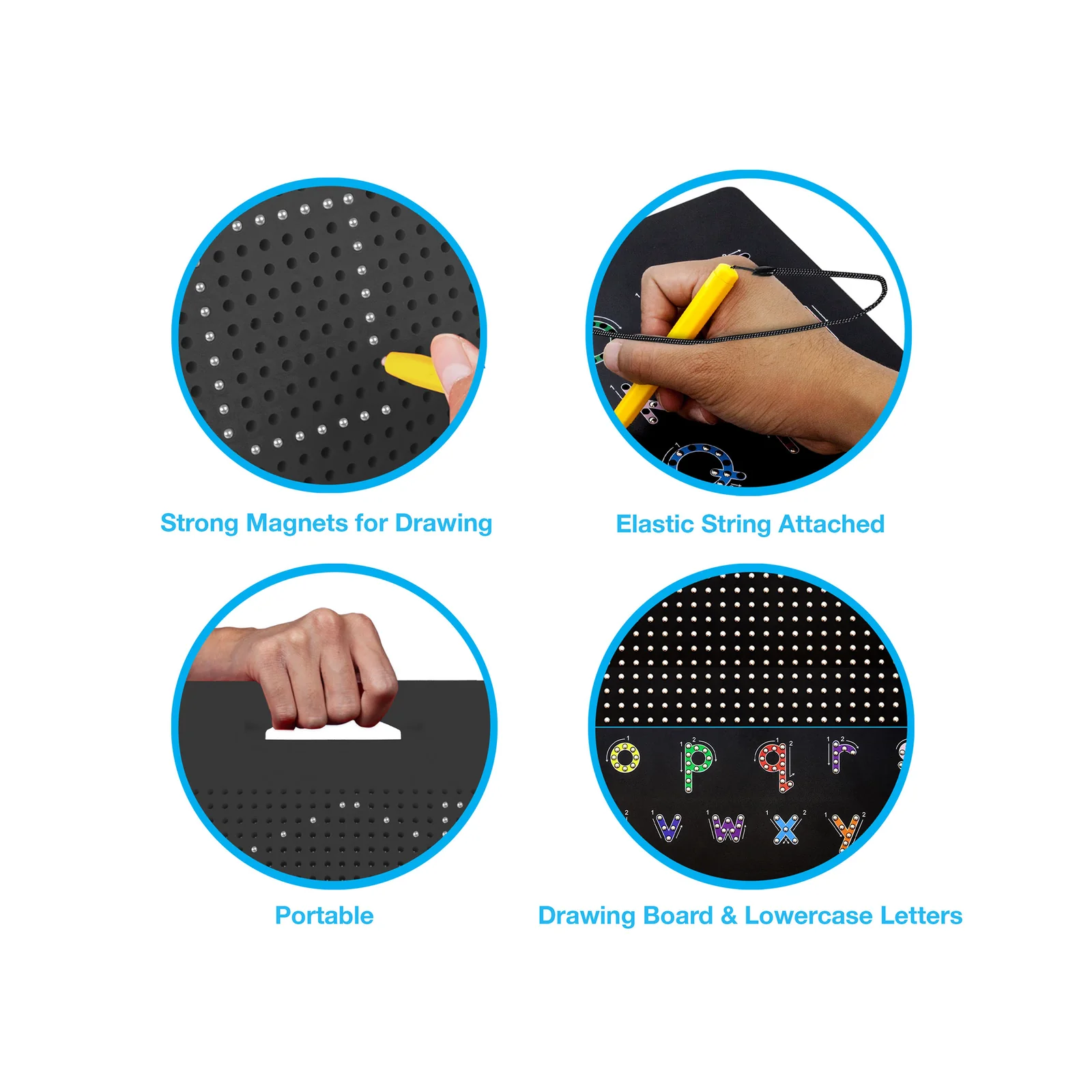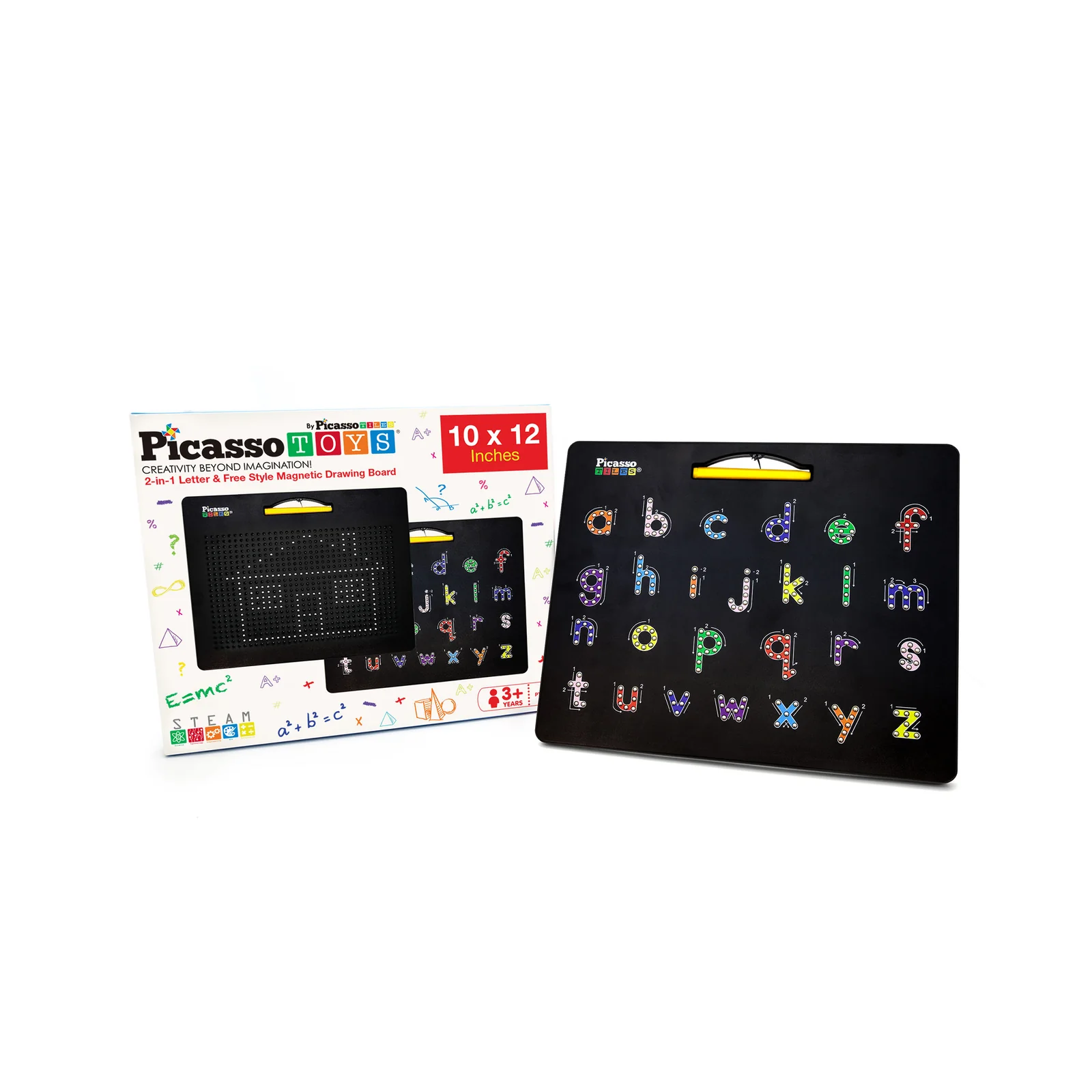 PicassoTiles Magnetic Alphabet Board is a dynamic tool designed to nurture children's cognitive development and linguistic skills. With two sides offering open-ended free-style drawing and lowercase alphabet letter tracing, this board promotes writing, reading, problem-solving, and hand-eye coordination. Crafted to cultivate creativity and foster intuitive learning, it empowers children to explore and learn through play. Ideal for home or classroom use, this board sparks imagination and encourages active engagement in language development.