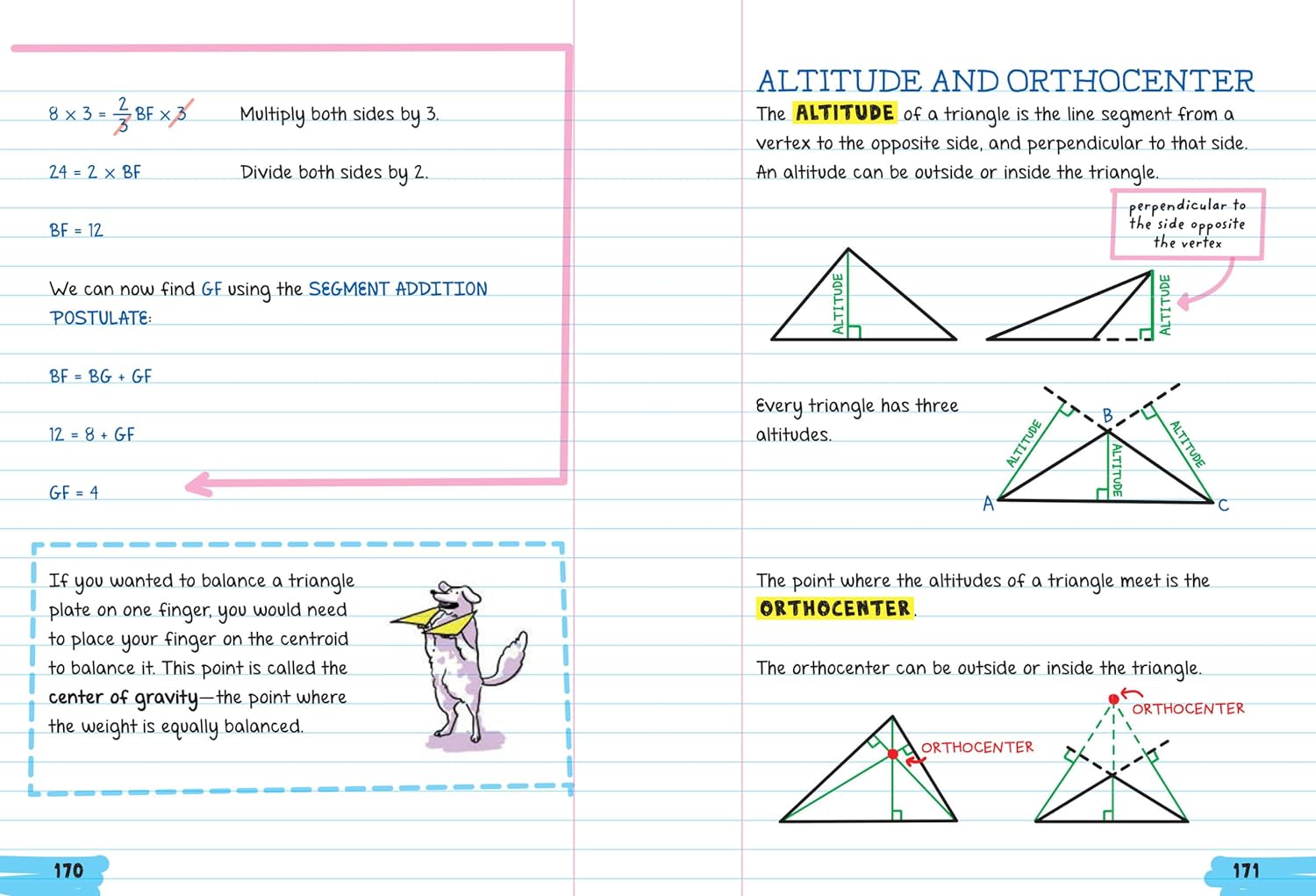 This Big Fat Notebook covers everything you need to know during a year of high school geometry class, breaking down one big bad subject into accessible units. Learn to study better and get better grades using mnemonic devices, definitions, diagrams, educational doodles, and quizzes to recap it all.