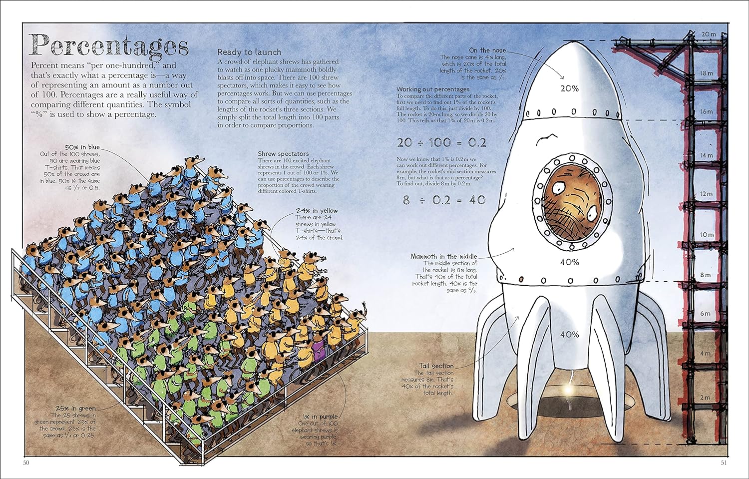 - Fun-filled illustrations show Macaulay’s mammoths exploring mathematical ideas demonstrating key mathematical principles in unusual and amusing ways.