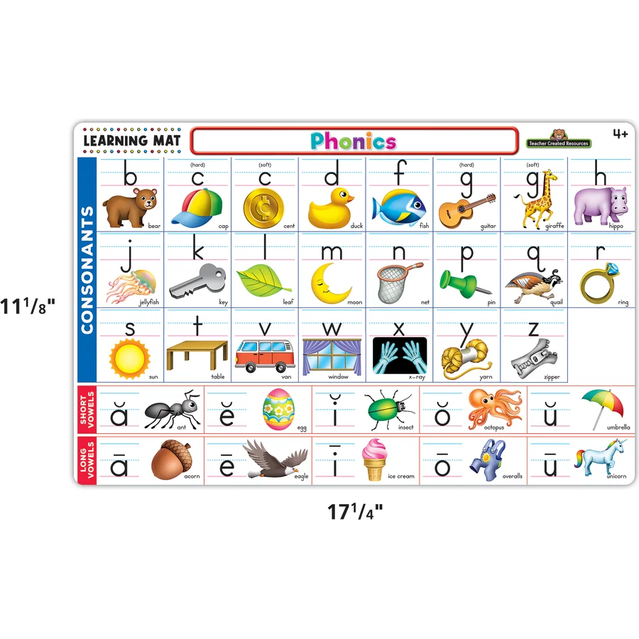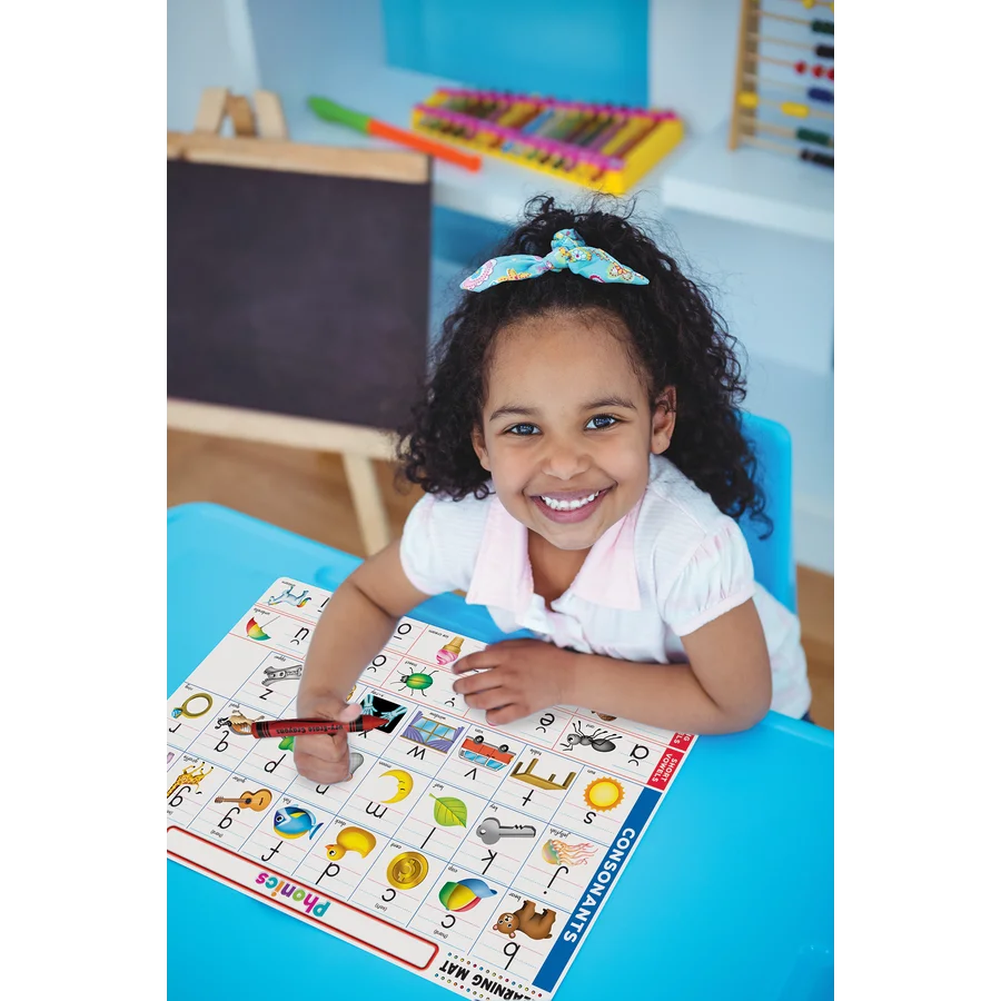 Teach your students consonants, vowels, and pronunciation with this interactive learning mat. This durable write-on/wipe-off mat provides endless hours of learning and practicing essential skills. Great for at-home, for a fun meal-time activity, or take it on-the-go to use in the car or while eating out. Ages 4+.