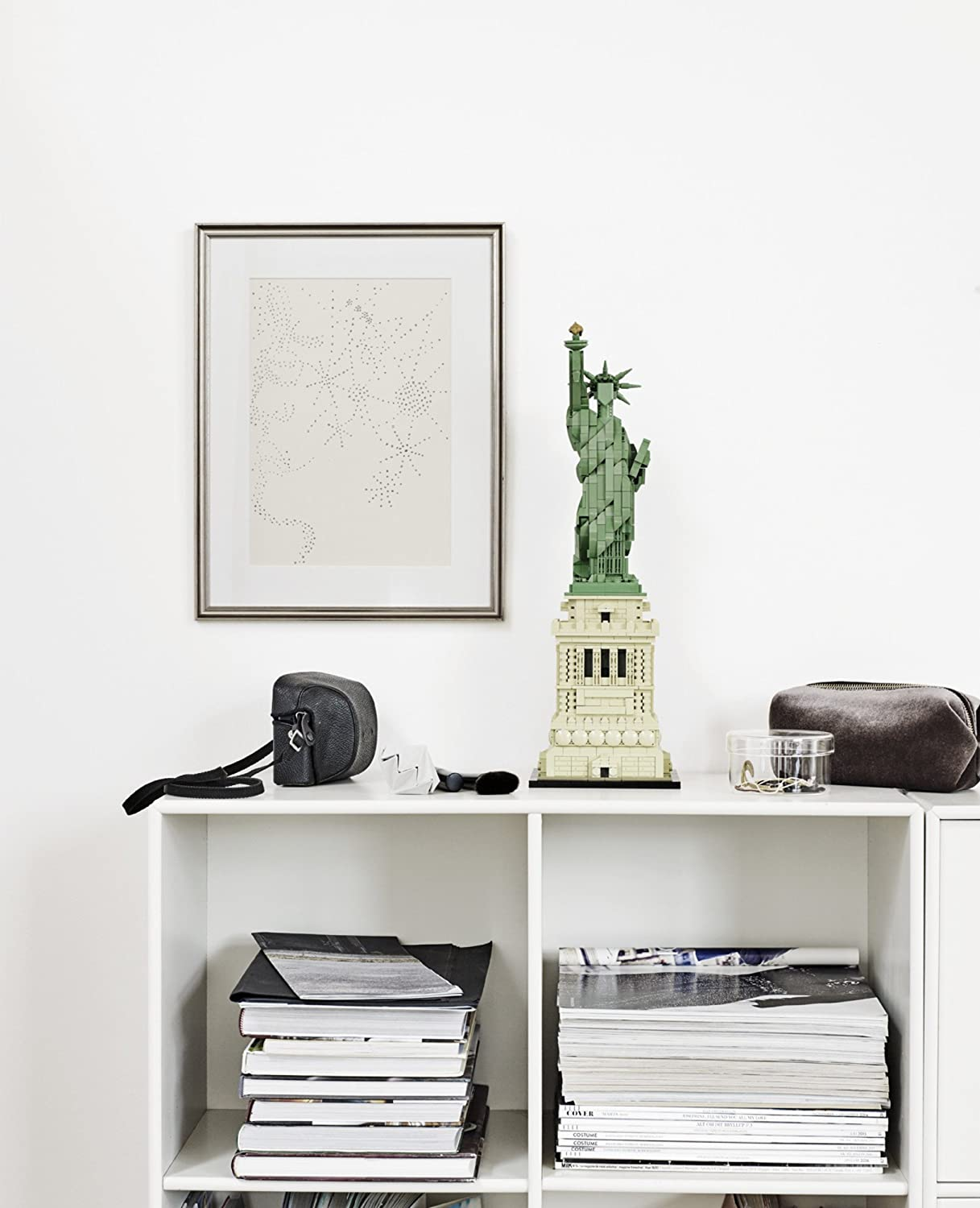 Celebrate a monumental blend of architecture and sculpture with this LEGO Architecture 21042 The Statue of Liberty set. America’s iconic symbol of freedom stands more than 305 feet above Liberty Island in New York harbor, welcoming seafarers from around the globe. This impressive LEGO interpretation faithfully reproduces the monument’s harmonious blend of sculpture and architecture with its intricately detailed shield-lined pedestal, brick detailing and columned balconies. The beautifully crafted Lady Liberty statue features a flowing robe, broken shackles, 7-ray crown, iconic tablet and an upraised arm bearing a golden torch. Finished with an authentic sand-green and beige color scheme, and a decorative nameplate, this model delivers a highly satisfying building experience to all with an interest in architecture, travel, history and design, and makes a truly symbolic centerpiece for the home or office.