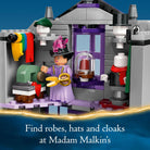 Open Ollivanders & Madam Malkin's Robes (76439) shops for magical playtime adventures with this LEGO Harry Potter Diagon Alley toy building set for kids. A Harry Potter toy for 8 year old boys, girls and any wizarding fan. It features highly detailed LEGO brick models of 2 iconic Diagon Alley shops, each packed with playful accessory elements. Ollivanders wand shop features a removable box on the shelves containing a Harry Potter collectible wand, wand racks, a ladder and a total of 26 wands. Madam Malkin’s Robes for All Occasions shop has mannequins, hats and cloak elements. The collectible toy playset also includes 6 LEGO minifigures – Harry Potter, Garrick Ollivander, Madam Malkin, Padma Patil, a wizard student, and a witch with a barrow of flowers – for creative play. Ollivanders and Madam Malkin's can be connected to each other and to other LEGO Harry Potter toy Diagon Alley models (sold separately) to create an enchanting brick-built shopping street. Contains 744 pieces.