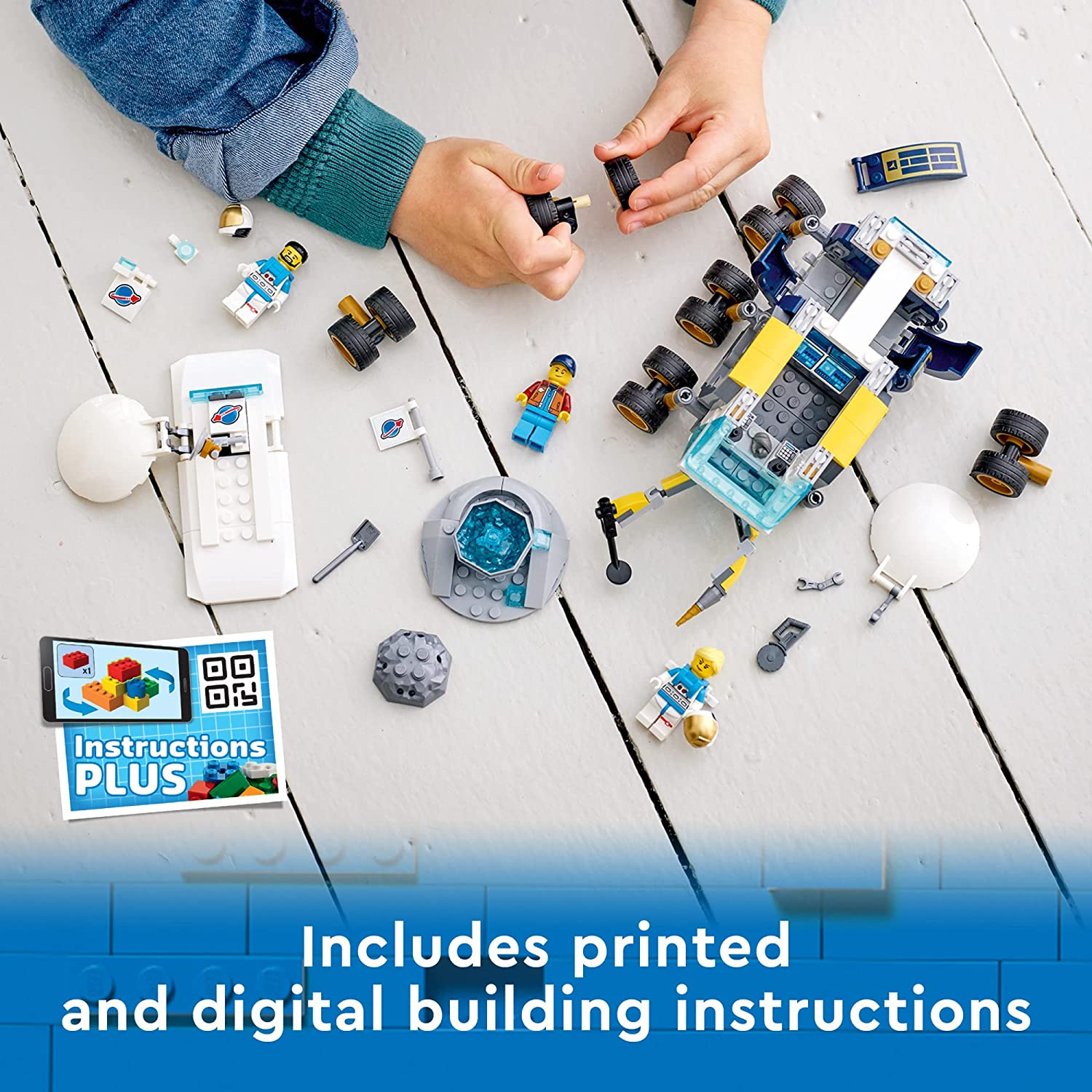 Give young space fans a treat with this NASA-inspired LEGO City Lunar Roving Vehicle (60348) playset. The rover comes with 12 wheels for omnidirectional steering, 2 inspection arms and room for the 3 astronaut minifigures, plus a meteorite setting to kick-start the play. Combine this set with others from the LEGO City Space universe for even more space fun.LEGO building toy for kids aged 6 and up.This playset includes a step-by-step pictorial building guide and interactive digital buildinginstructions. Available in the free LEGO Building Instructions app for smartphones and tablets, the intuitive digital guide comes with amazing zoom and rotate tools that allow kids to visualize models from all angles as they build.Welcome to a universe of imagination.LEGO City Space toy playsets come with feature-rich models inspired by real NASA machines, vehicles and spacecraft, plus inspiring astronaut characters for imaginative, open-ended play based on real-life space missions.