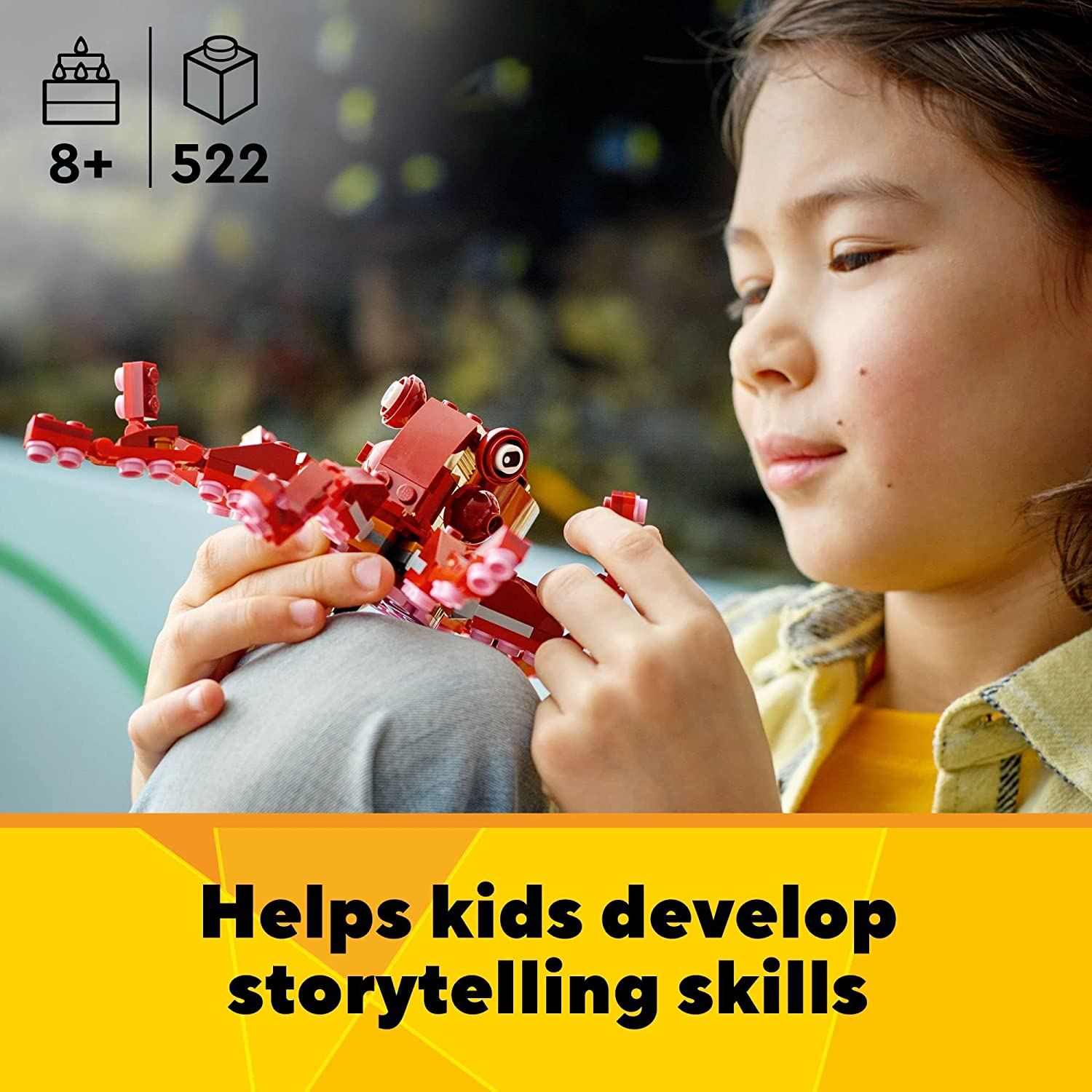 Kids aged 8 and up can enjoy thrilling underwater adventures with the amazing LEGO Creator 3in1 Sunken Treasure Mission (31130). The playset features a supercool submarine, a giant posable octopus toy, 2 minifigures and a safe with gold bars and gems. Kids can enjoy 3 different build-and-play experiences with this LEGO Creator 3in1 set. They can build the submarine and octopus toys and then rebuild them into a smaller submarine and giant lobster playset. They can make a scene with a giant manta ray, a diver and a coral reef with a small cave, or use their imaginations and turn the same bricks into something else. LEGO toys come with interactive digital building instructions to make the building experience even more fun. Available in the LEGO Building Instructions app for use on smartphones and tablets, the zoom and rotate tools help kids visualize the model as they build.