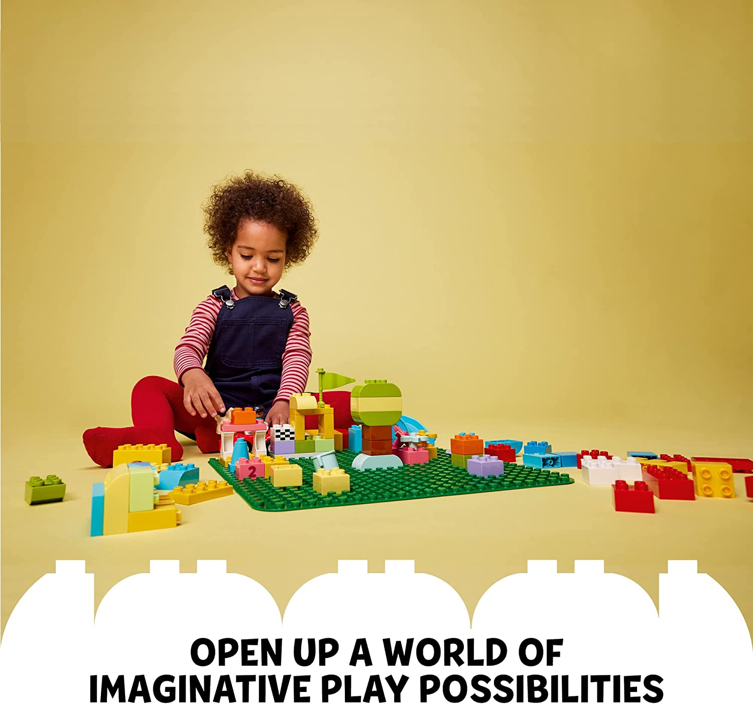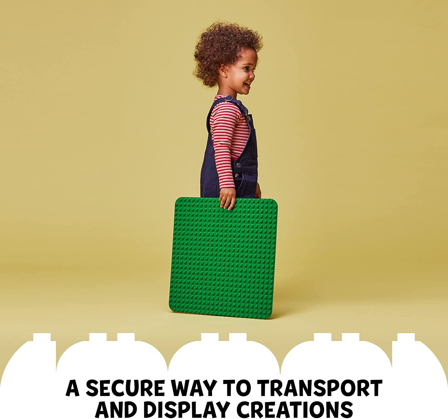 Measuring over 15 in. (38cm) square, the LEGO DUPLO Green Building Plate (10980) provides the ideal landscape for kids aged 18 months and up to build on, play with and display their wonderful creations. This 24x24-stud green baseplate is the ideal starting place for little builders. It holds bricks firmly at any angle (even upside down!), opening up an endless world of imaginative play possibilities – from grassy gardens to exotic jungles, steep mountainsides to cool, green, flying machines. And, when the building stops, the firm baseplate provides a collapse-free way to transport and display kids’ handiwork. Parents can share precious developmental milestones as LEGO DUPLO toys put open-ended fun, self-expression and confidence into young children’s hands.
