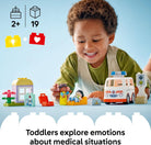 Toddlers ages 2 and can jump to action when emergencies arise with the LEGO DUPLO Ambulance & Driver (10447) building toy. Little ones can spend hours creating rescue scenes and playing pretend with the drivable ambulance toy, 2 LEGO DUPLO figures, a paramedic and a girl figure. This learning toy also helps children develop social and emotional understanding. Boys and girls can practice empathy, learn to express their feelings around being unwell, or connect to how they felt the first time they saw an ambulance. This toy for toddlers also helps develop logical thinking and fine motor skills as they open the ambulance toy’s roof and transport the patient using the gurney. This playset includes building instructions with a printed play wheel that also lets parents and preschoolers explore different emotions. Contains 19 pieces.