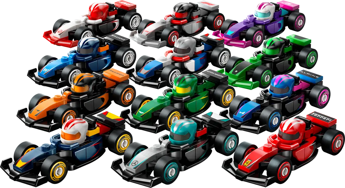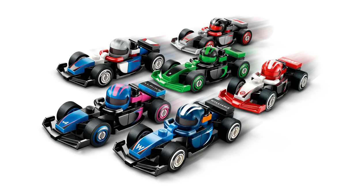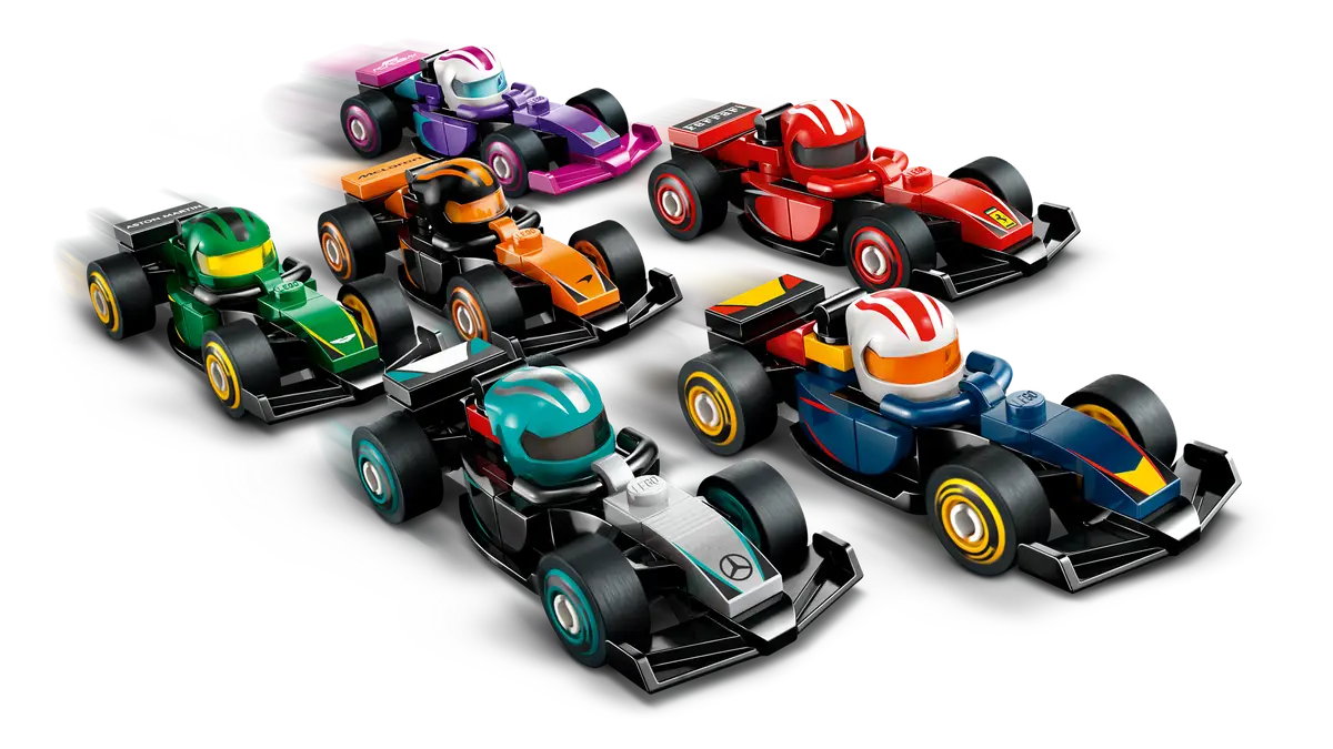 There is 1 surprise LEGO F1 Collectible Race Car in each vehicle kit and a total of 12 to collect: an F1 car, an F1 ACADEMY™ car, and 10 cars from the Formula 1 teams: RB20, Mercedes-AMG, Ferrari, McLaren, Aston Martin, Alpine, Williams, VCARB, Sauber and Haas.