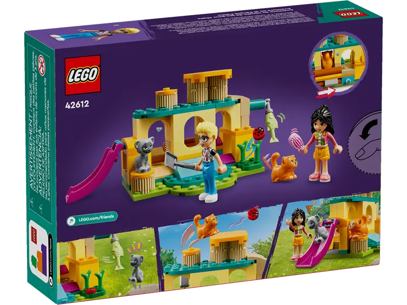 Cat fans can enjoy lots of fun with the LEGO® Friends Cat Playground Adventure Set (42612) for girls, boys and kids aged 5+ who love animal toys. The set includes a buildable playground, 2 mini-dolls, 2 animal characters and pet care accessories that include a toy fish, a catnip plant, food and a litter box.